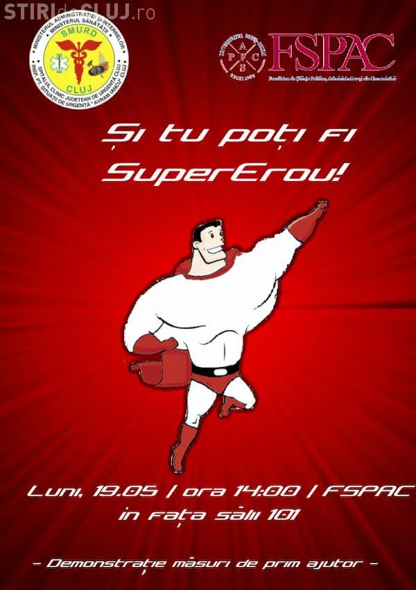 ”Considerăm măsurile de prim ajutor un set de aptitudini deosebit de importante în viața de zi cu zi. Cunoașterea acestora putând salva vieți, dar și limita apelarea inutilă a serviciilor medicale de specialitate. Prin campania noastră, desfășurată sub sloganul „Și tu poți fi SuperErou!”, vrem să informăm studenții cu privire la importanța și necesitatea acordării primului ajutor de bază. Vrem ca studenții să conștientizeze că primul ajutor este foarte important iar acordarea promptă și corectă a acestuia poate face diferența dintre viață și moarte. Dorim să mulțumim conducerii ISU Cluj și FSPAC pentru sprijinul acordat”, precizează cele trei studente.
