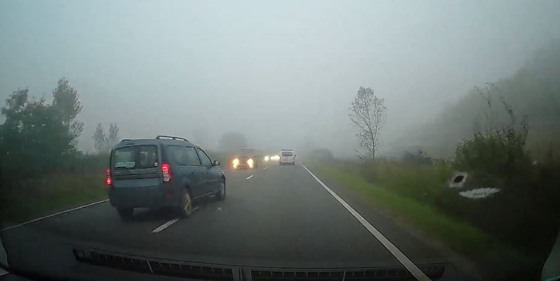 Un șofer cu camera pe bord a filmat o depășire inconștientă pe drumul spre Zalău, în condiții de ceață.