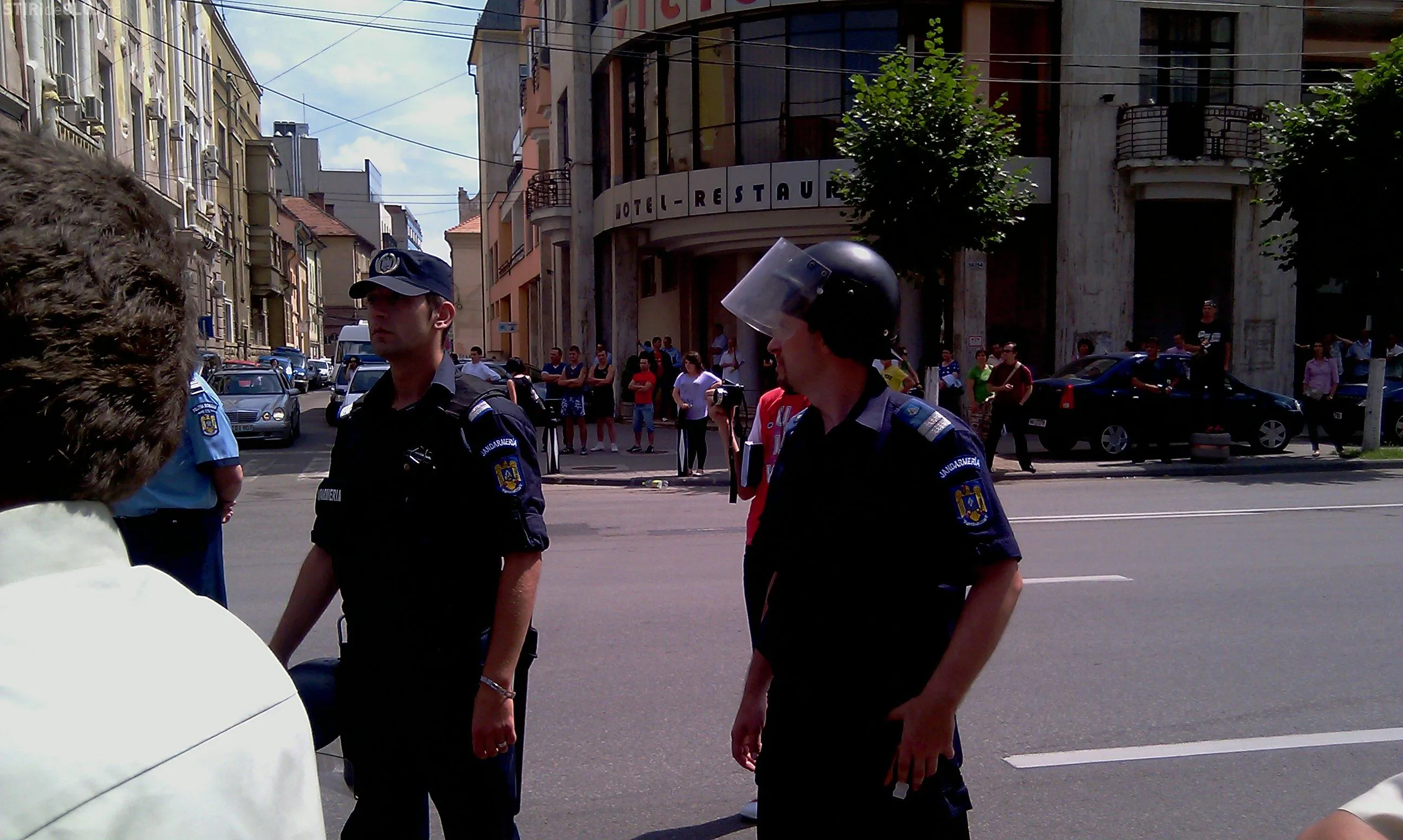 Jandarmii care pazesc obiectivul au intervenit cu echipamentul din dotare. Gazele lansate i-au linistit pe protestatari, iar dupa aproximativ 10 minute situatia redevenind calma.