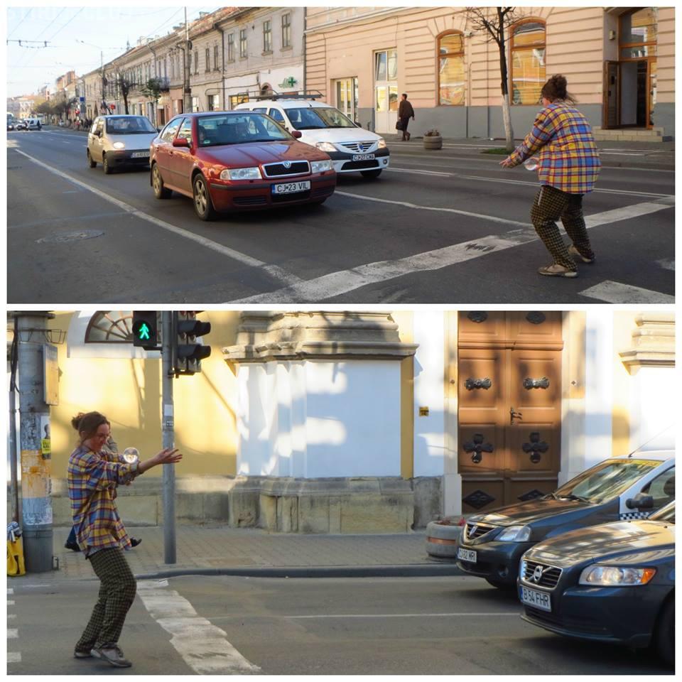 Jonglerii la semaforul din Cluj! Cine e femeia care îi distrează pe clujeni în TRAFIC? - FOTO