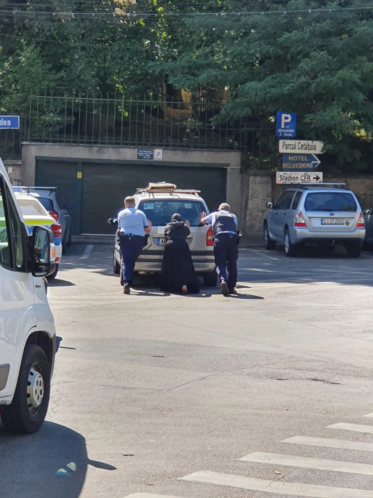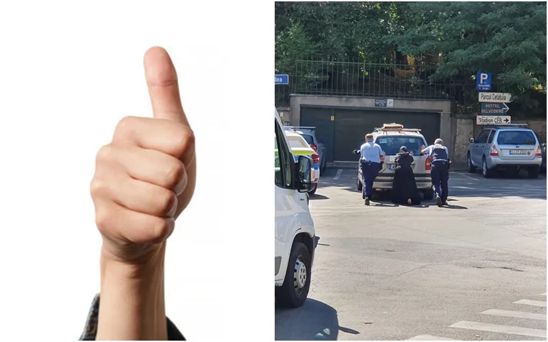 Jos pălăria! Polițiștii din Cluj-Napoca au împins o mașină care bloca traficul - FOTO