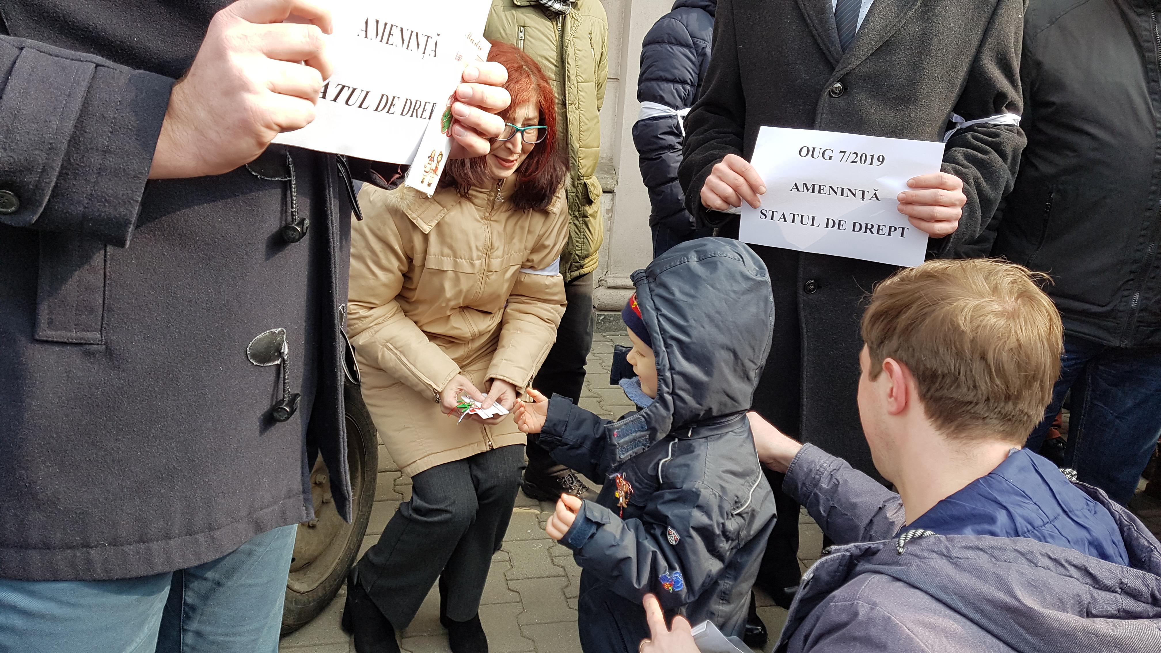 Alături de magistrați, la protest au participat și clujenii, iar unii le-au dat mărțișoare judecătoarelor și procuroarelor.
