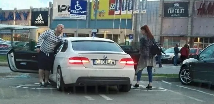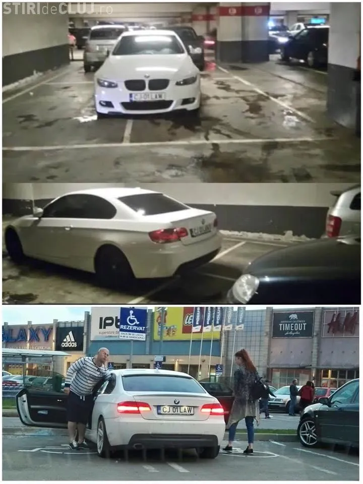 O altă fotografie a apărut pe pagina ”Ai parcat ca un BOU”, în care apare aceeași mașină cu număr de înmatriculare de justițiar parcată pe două locuri la Iulius Mall Cluj.