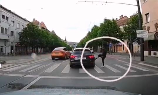 Kickboxing cu mașina la Cluj! Deși semaforul era ROȘU pentru pietoni, a dat cu piciorul în mașină pentru că nu i-a dat prioritate VIDEO