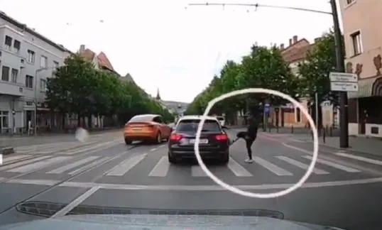 Un incident ciudat a fost filmat pe strada Horea din Cluj-Napoca. Unui tânăr care încerca să traverseze strada pe trecerea de pietoni, nu i-a fost acordată prioritate de catre conducătorul unui autoturism care circula regulamentar, având culoarea verde la semafor.