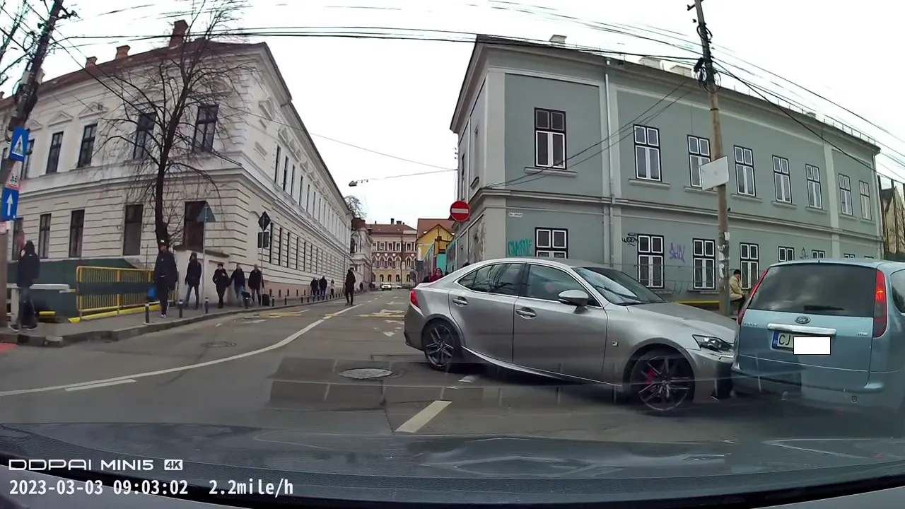 Șoferul unui Lexus argintiu a fost filmat în timp ce părea că intră intenționat într-un Ford, care era deja intrat pe strada Argeș. Nu este clar dacă șoferul s-a enervat că Fordul a intrat pe stradă și a vrut să se răzbune.