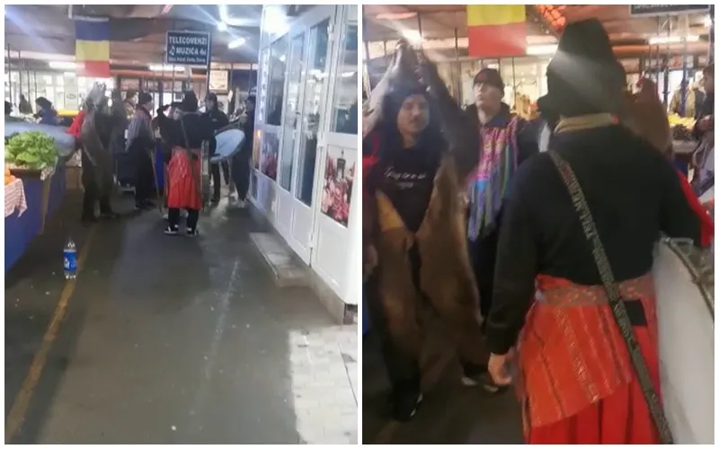 O trupă de colindători a fost surprinsă în Piața Mărăști, în timp ce încerca să impresioneze clujenii ieșiți sâmbătă dimineața la cumpărături.