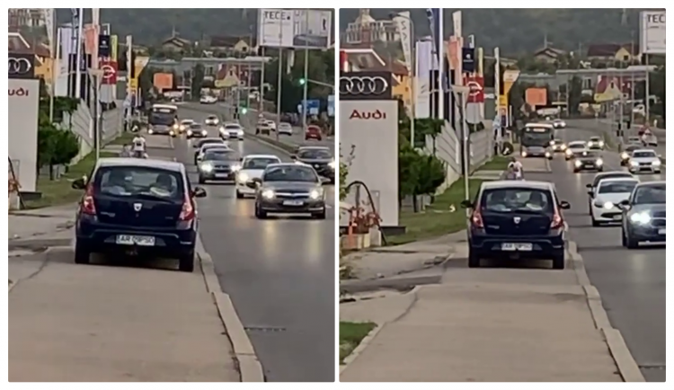 La Cluj, condusul regulamentar este pentru fraieri? Un șofer și-a făcut propria bandă, pe trotuar - VIDEO