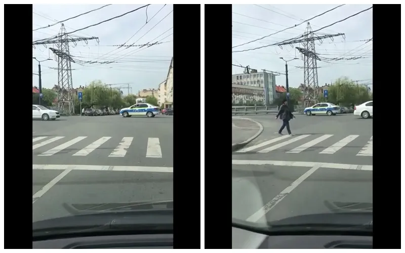 Un echipaj de poliție a fost filmat când trecea ilegal intersecția străzilor Decebal și Dacia, spre podul Traian.