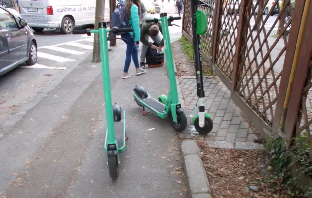 La Cluj, trotuarul NU este al pietonilor! Pe lângă mașinile parcate abuziv, acum trecătorii trebuie să facă slalom și printre trotinetele electrice