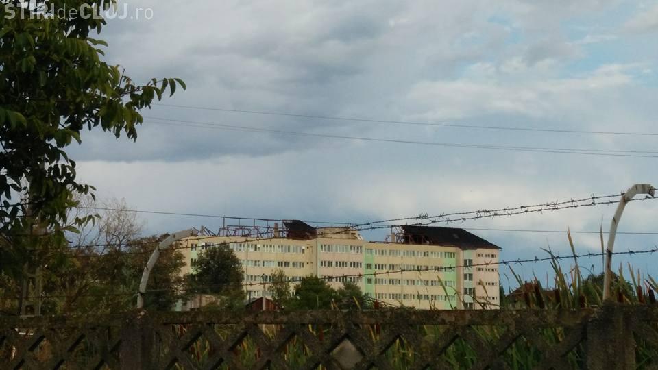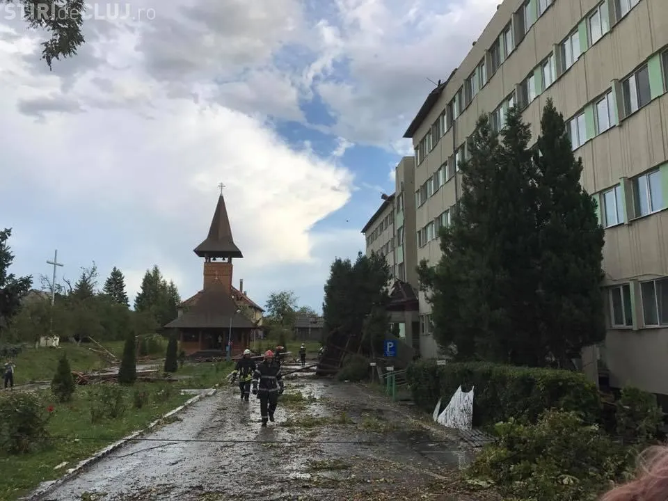 La Huedin, oamenii spun că a fost ”tornadă”. Acoperișul spitalului a zburat - FOTO