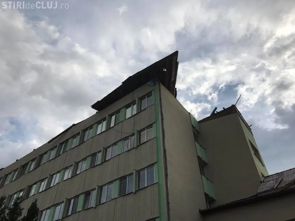 Acoperișul Spitalului municipal Huedin a fost luat pe sus de vijelie, iar acum unitatea sanitară are mari probleme.