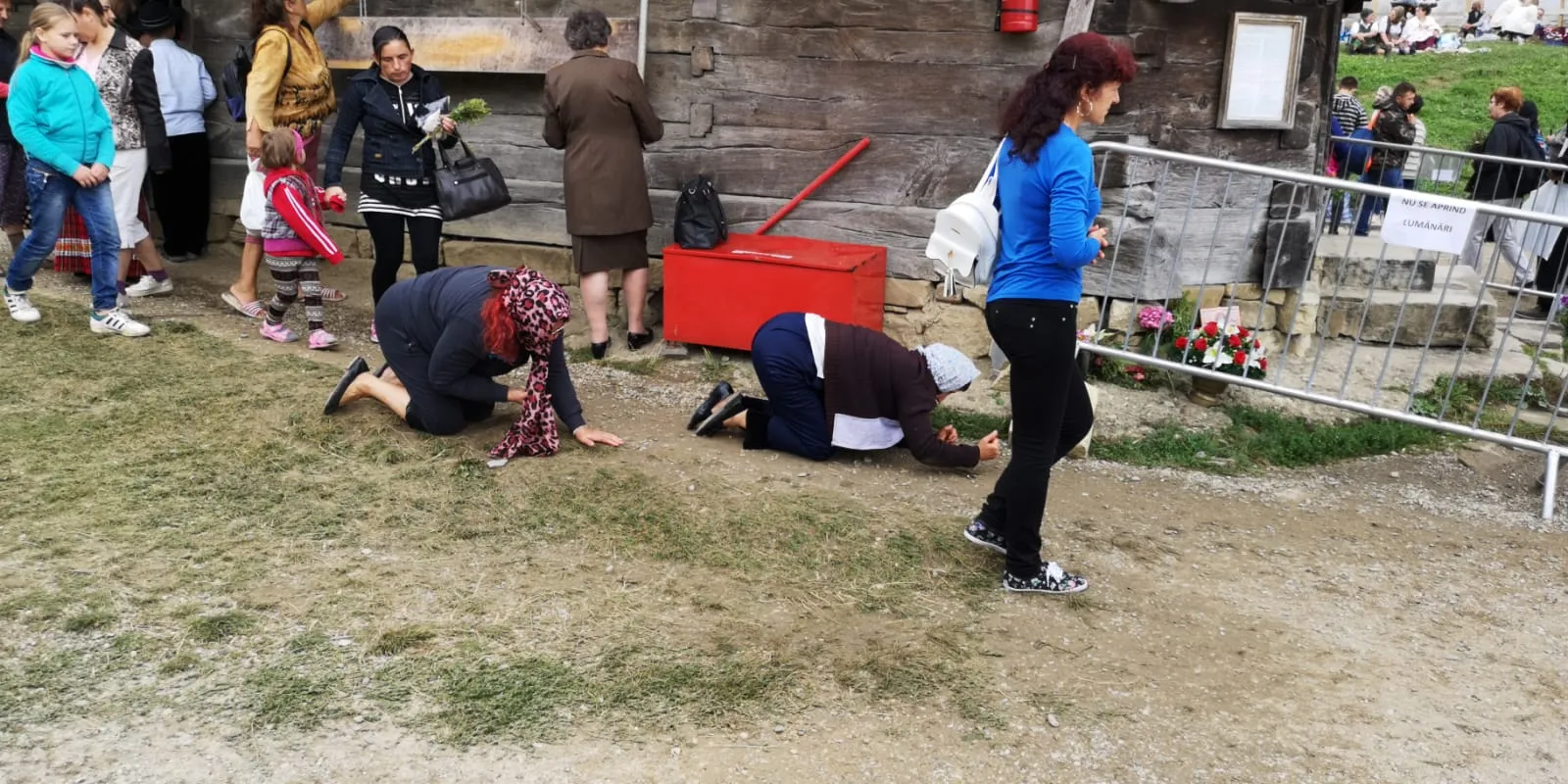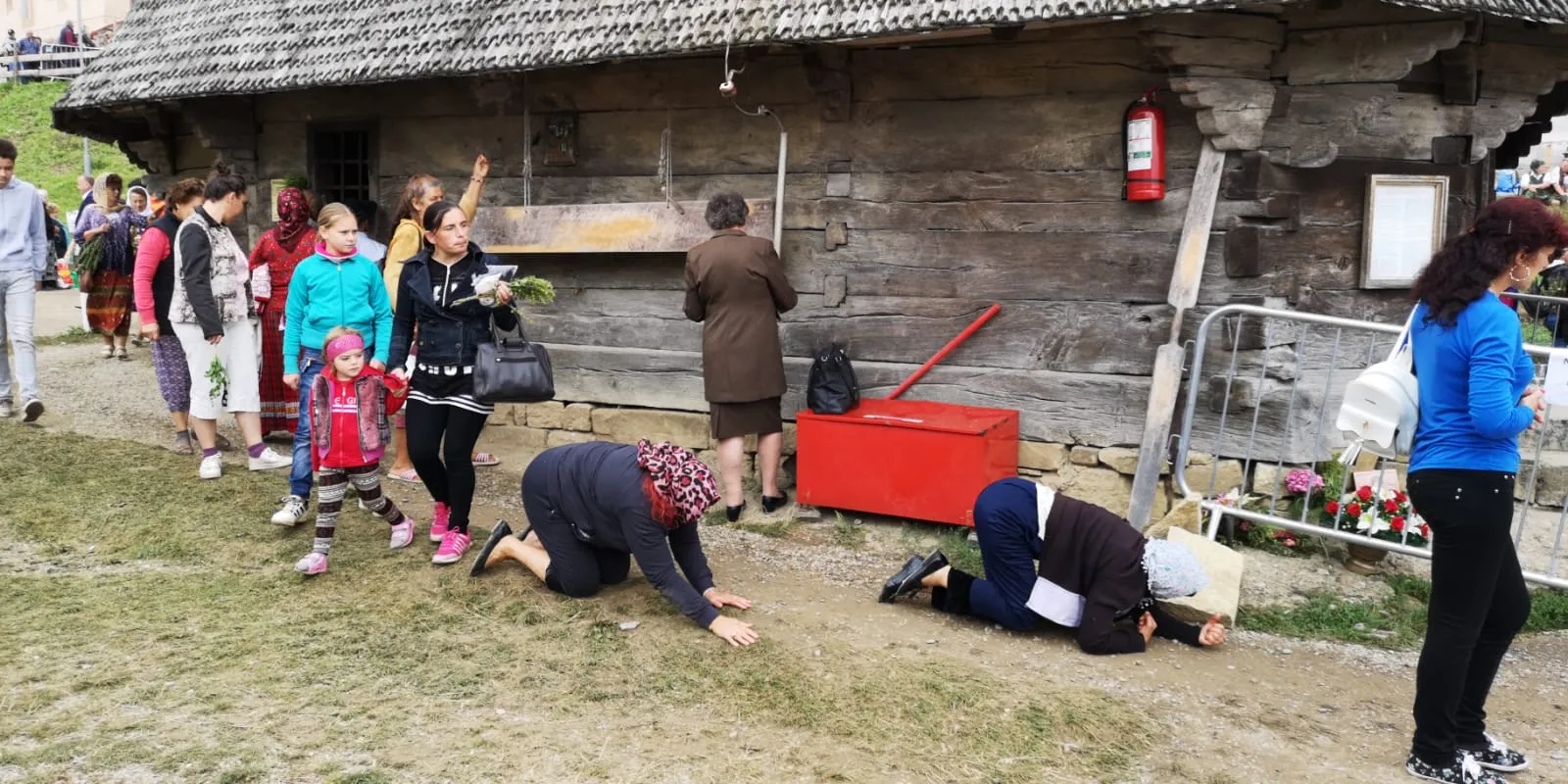 Pelerinii au făcut penitență și au inconjurat biserca de lemn în genunchi si pe coate de cat mai multe ori. ”Când crezi nu e greu sa stai in genunchi. Nu simți durerea. Ma rog pentru fiica mea sa aiba sanatate”, a spus un credincios, care sustine ca acest obicei este unul crestin.