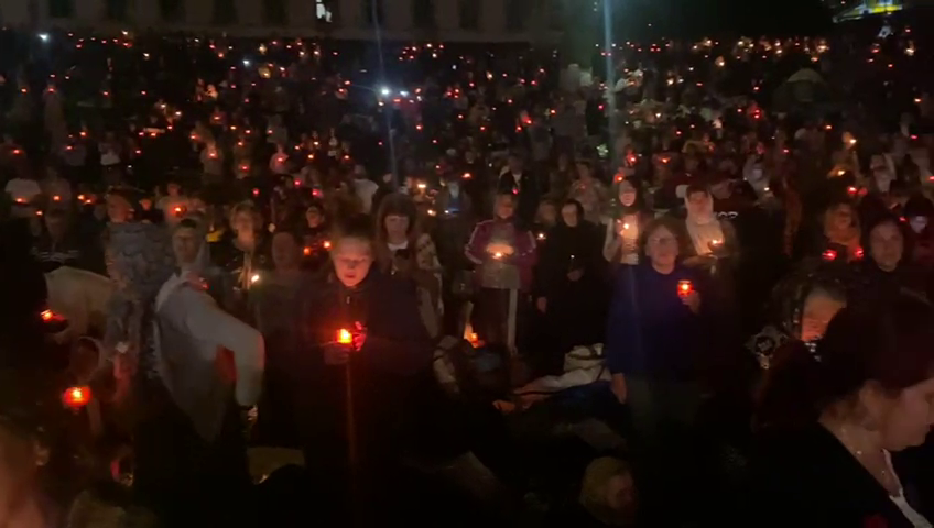 Imaginile surprinse din dronă arată că oamenii au ocupat tot dealul de la Mănăstire.