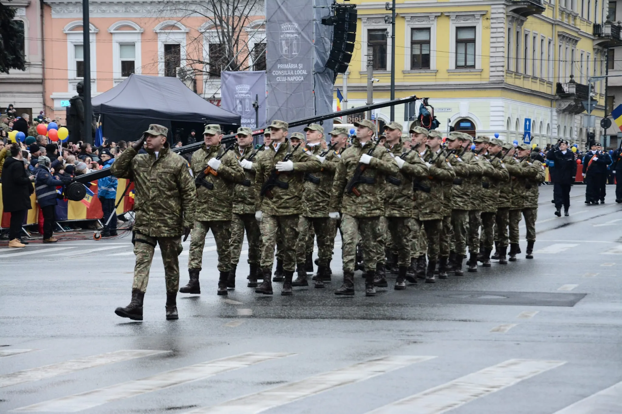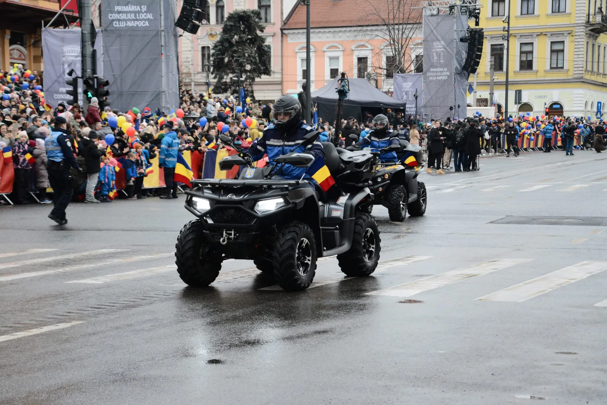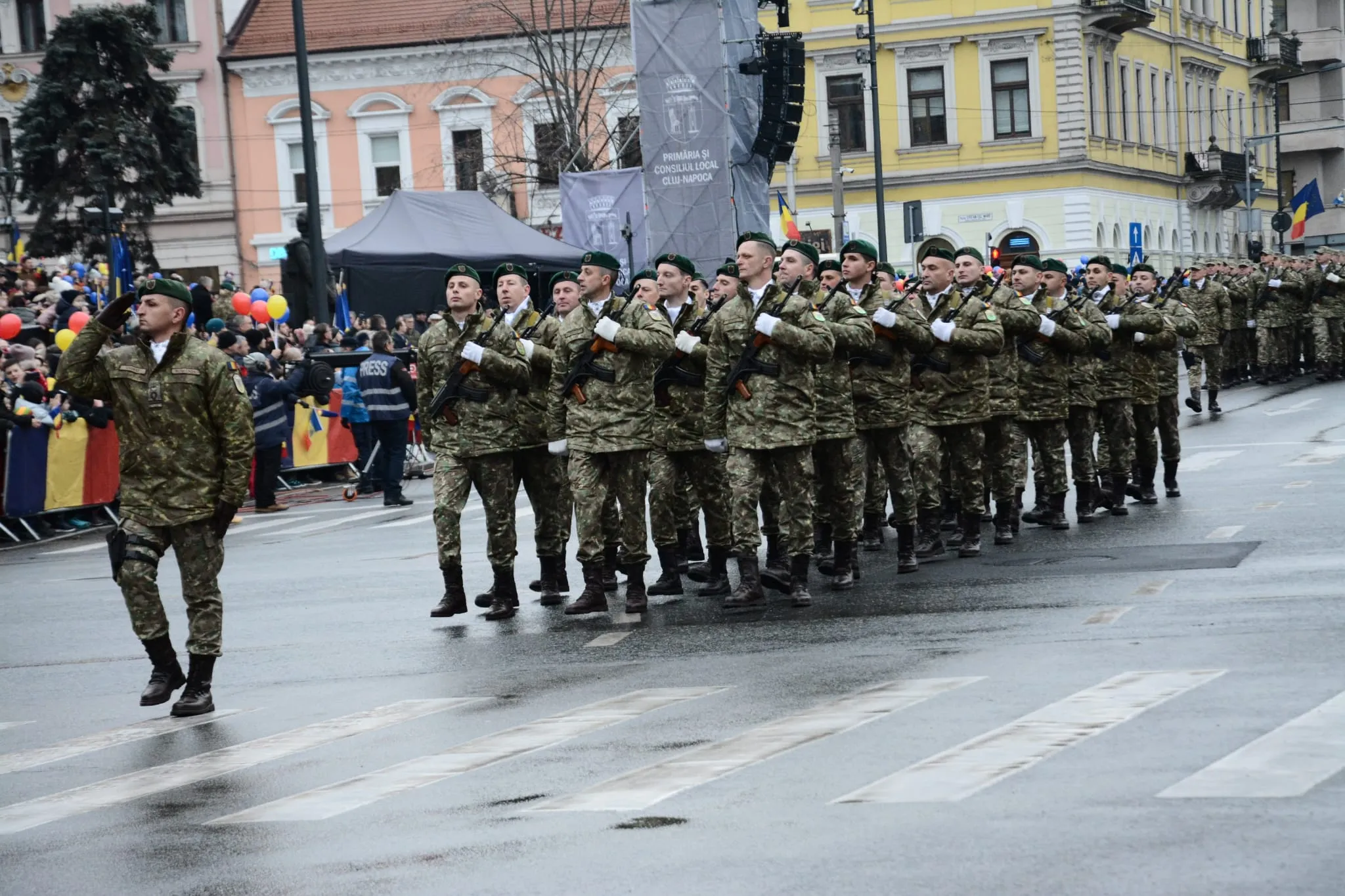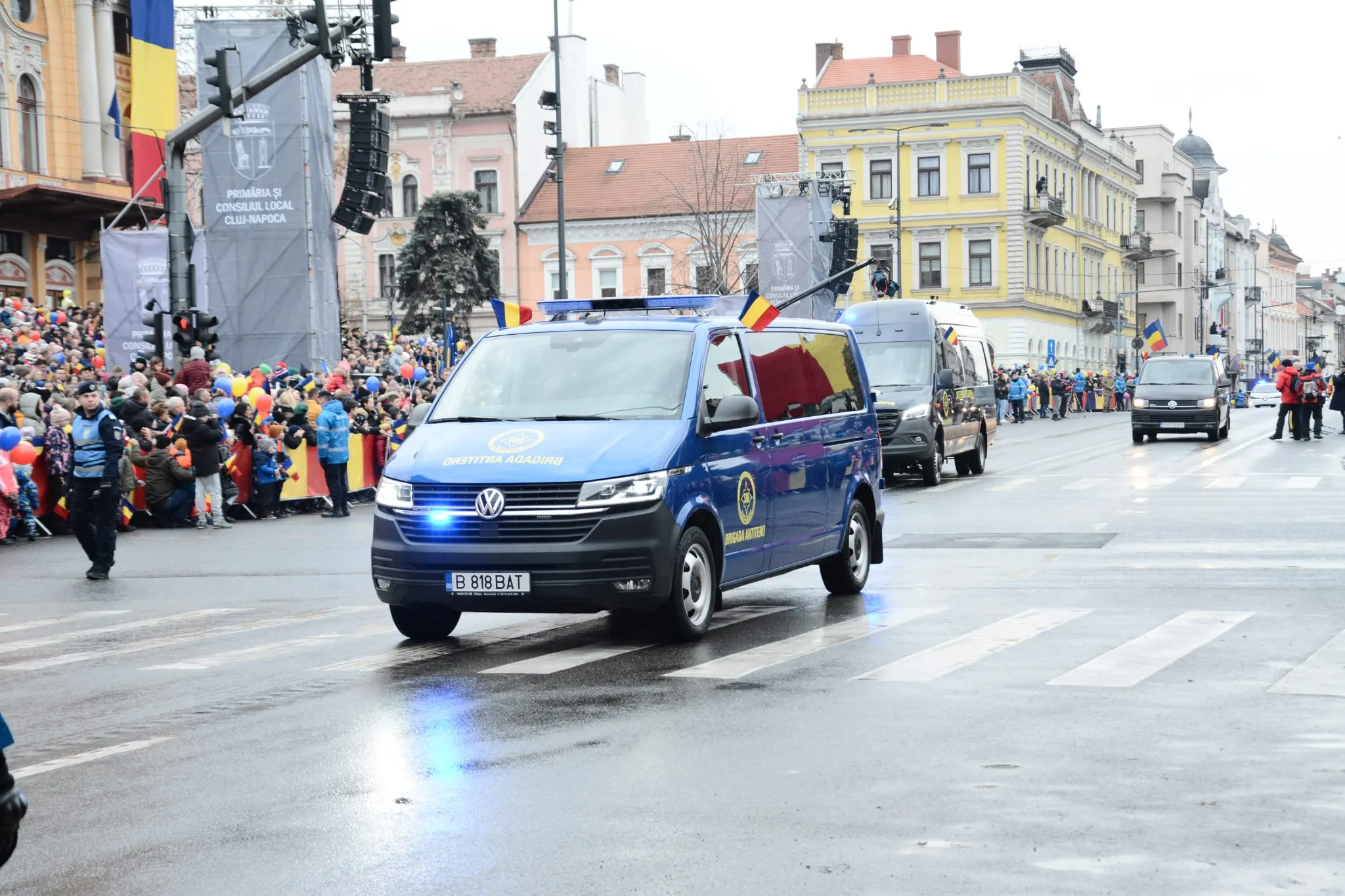 Sute de clujeni au asistat la parada de 1 Decembrie, din Piața Avram Iancu. Au fost foarte mulți copii care s-au înghesuit în primele rânduri pentru a saluta soldații, jandarmii, polițiștii și pompierii, care au defilat.