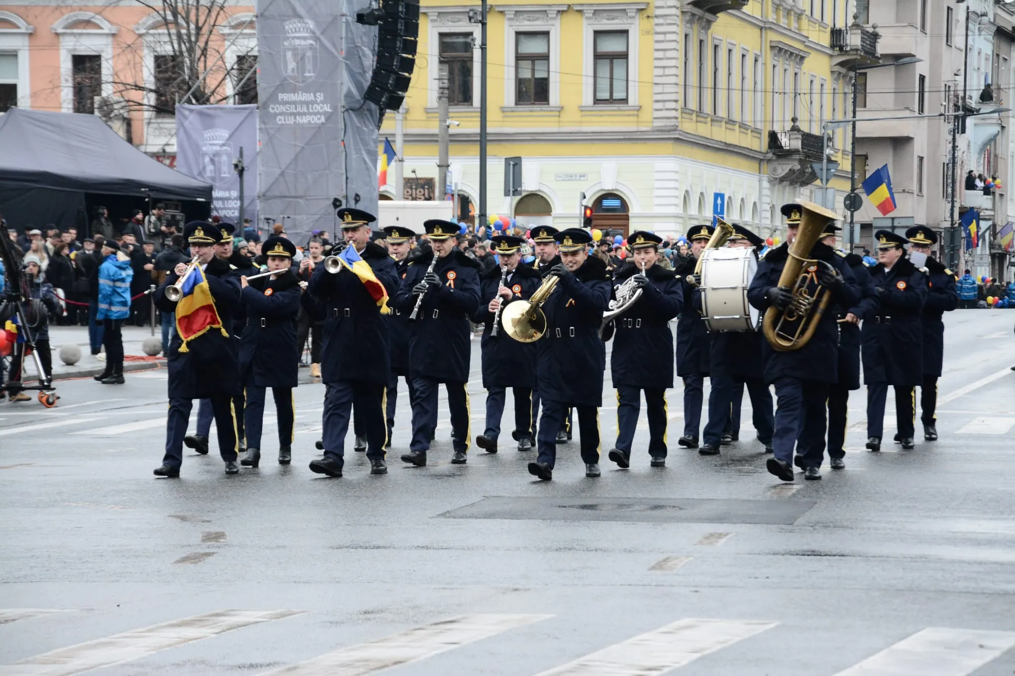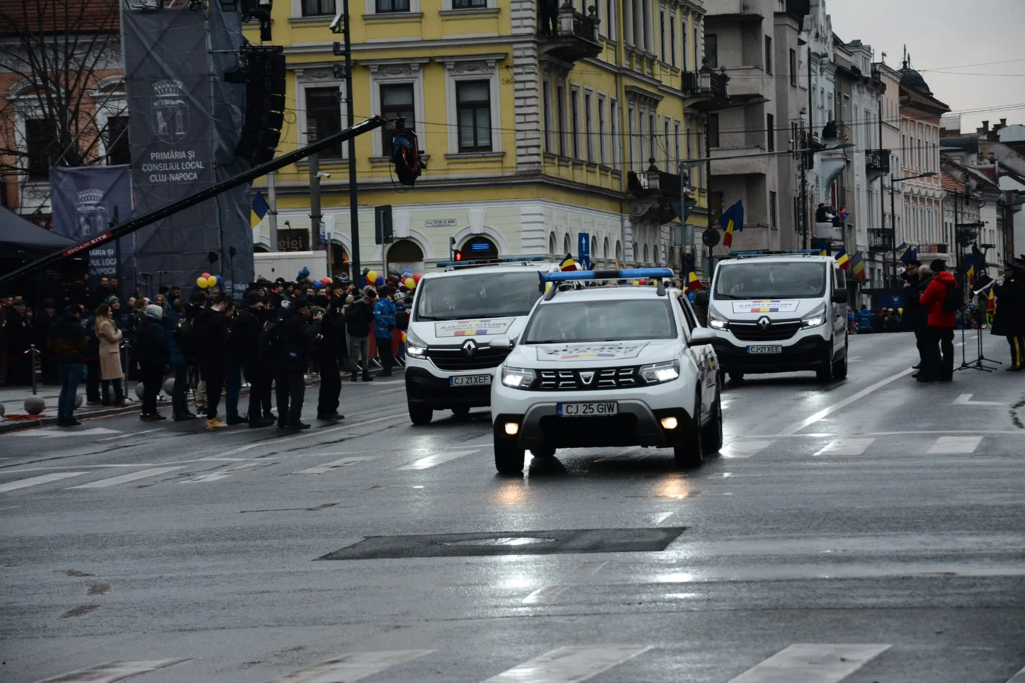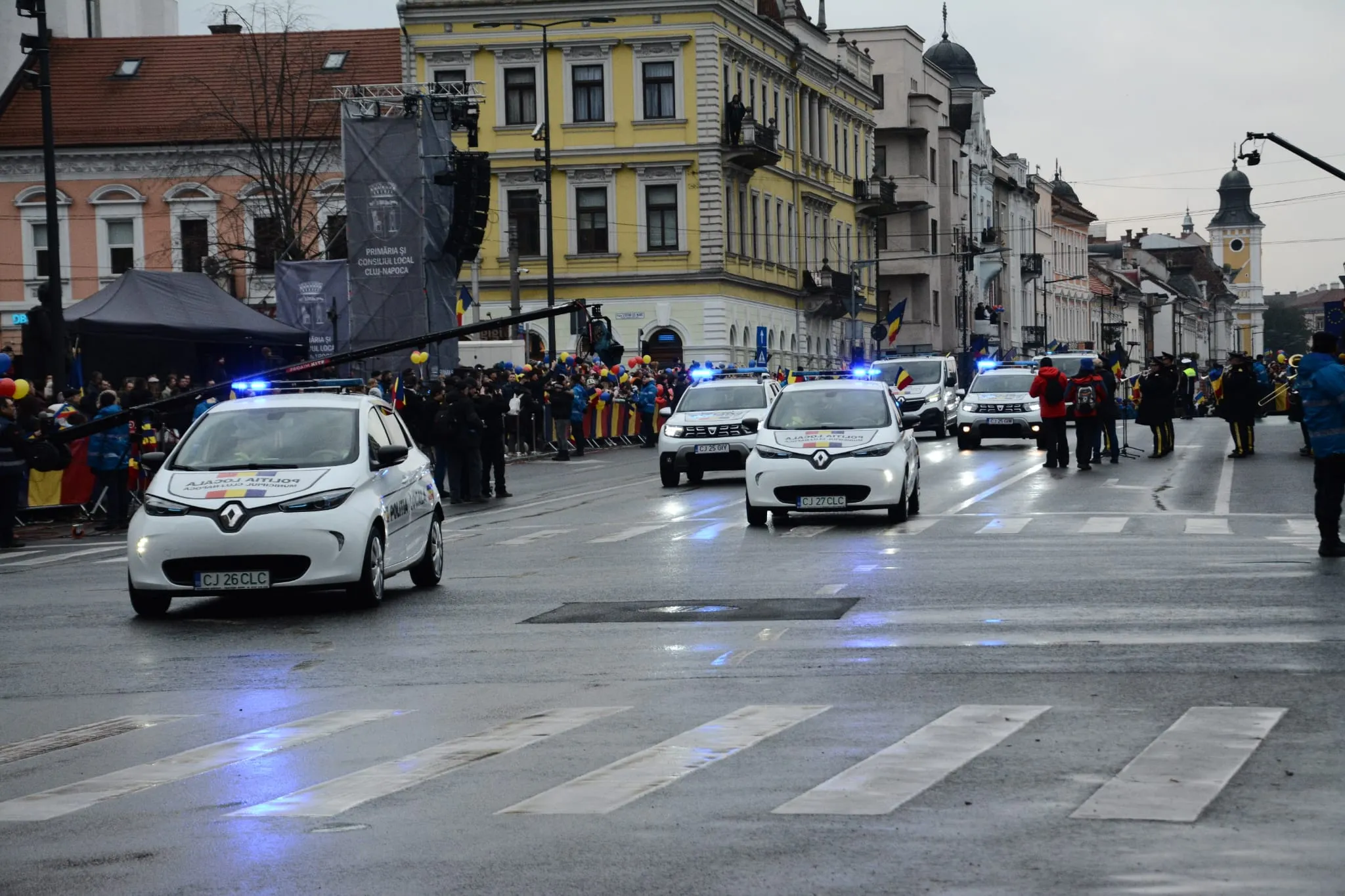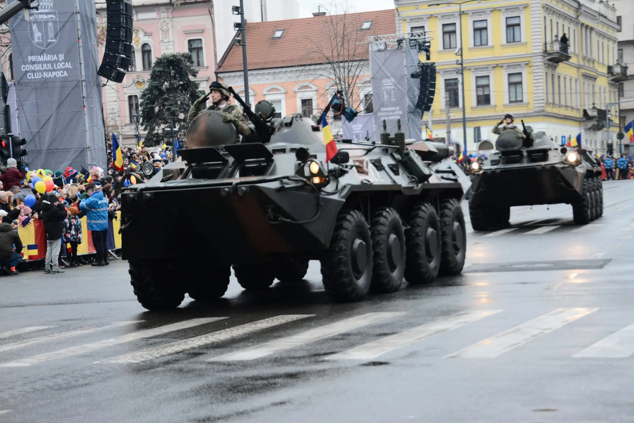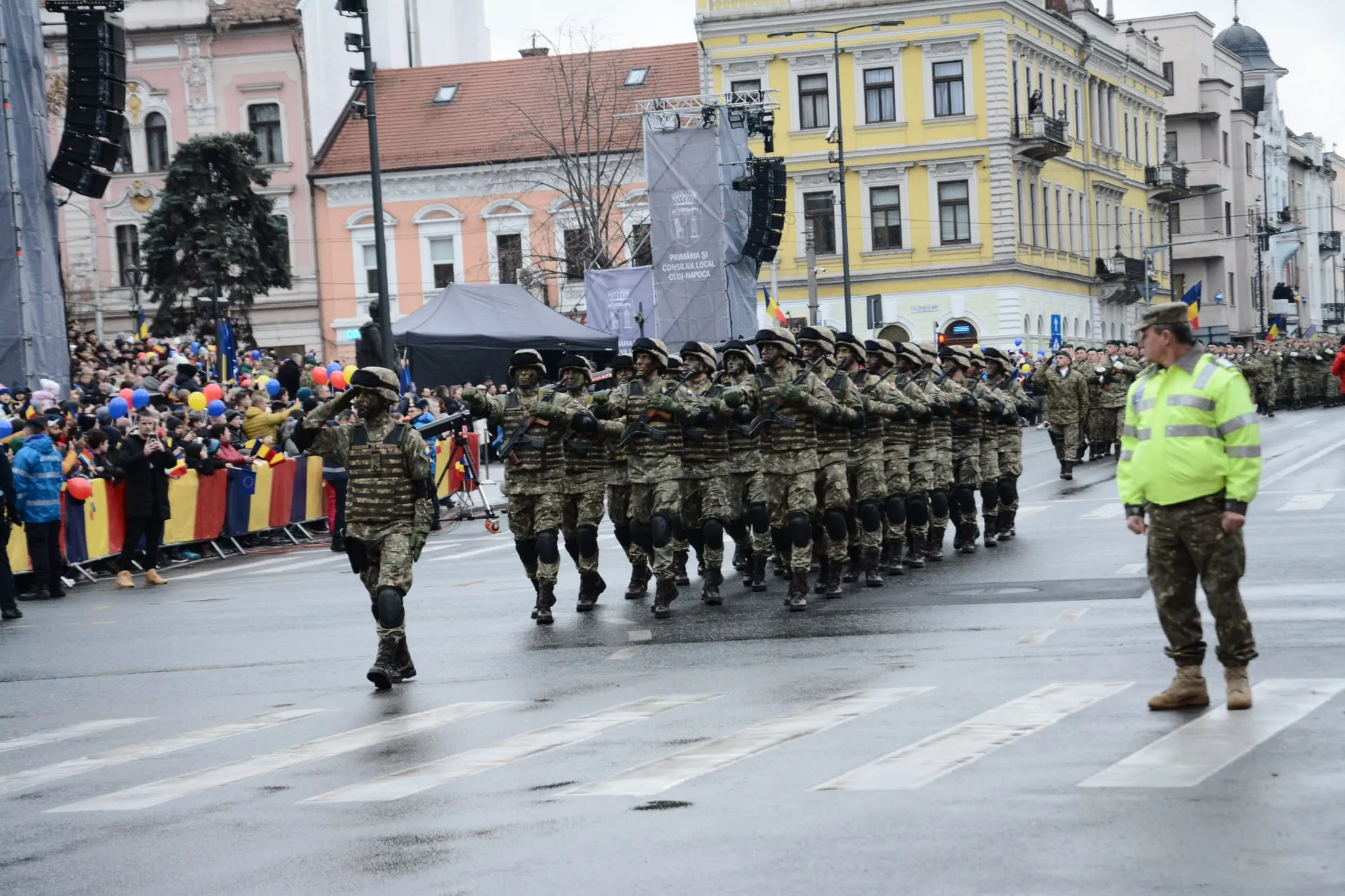 Sute de clujeni au asistat la parada de 1 Decembrie, din Piața Avram Iancu. Au fost foarte mulți copii care s-au înghesuit în primele rânduri pentru a saluta soldații, jandarmii, polițiștii și pompierii, care au defilat.