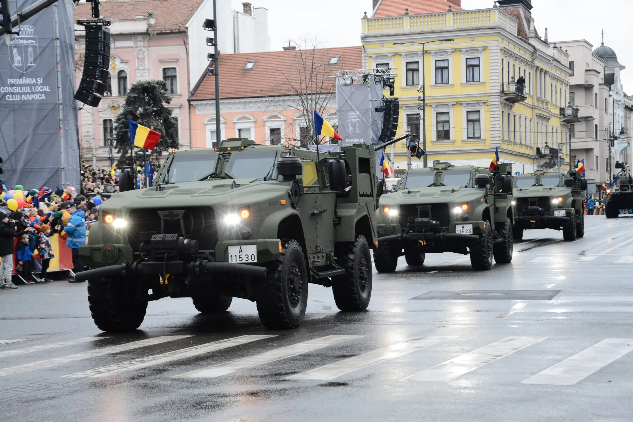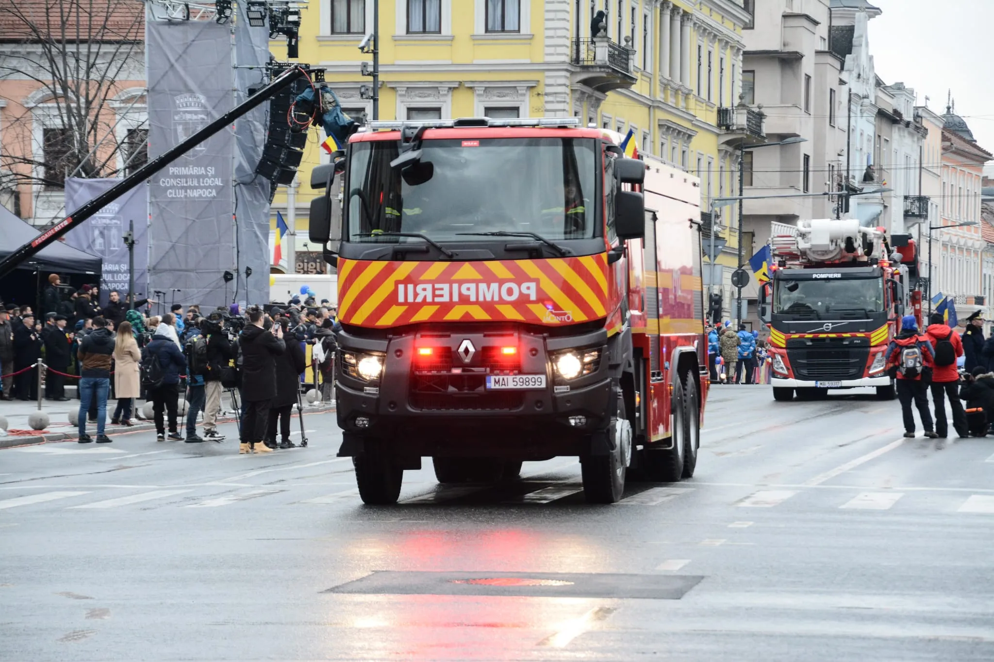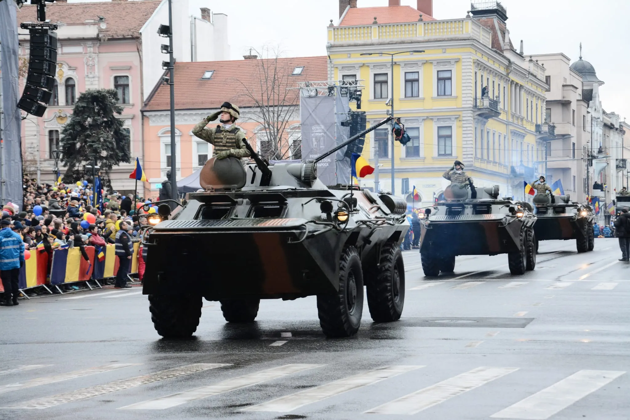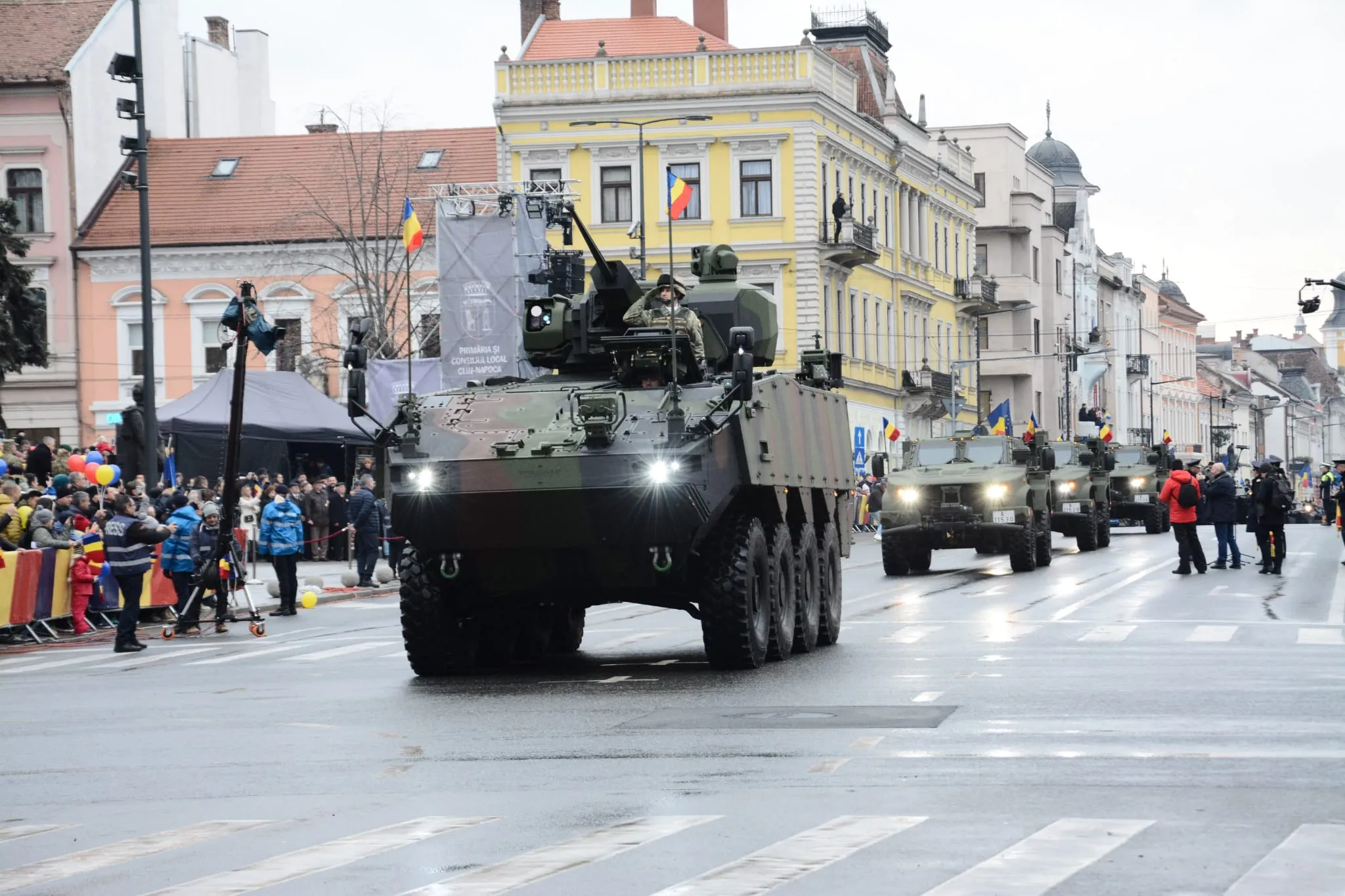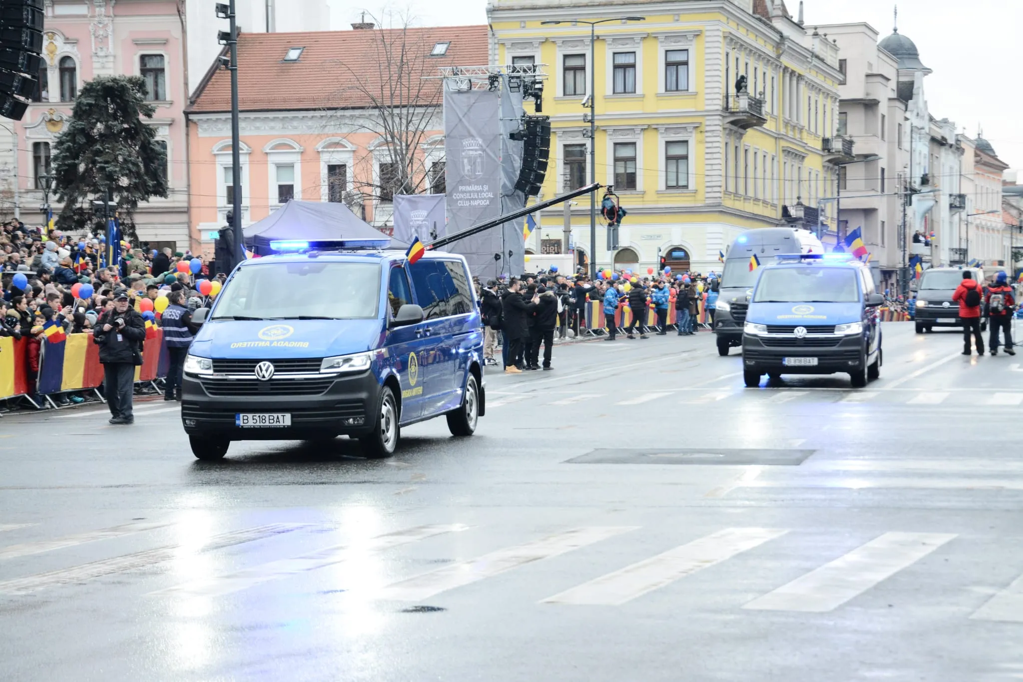 Sute de clujeni au asistat la parada de 1 Decembrie, din Piața Avram Iancu. Au fost foarte mulți copii care s-au înghesuit în primele rânduri pentru a saluta soldații, jandarmii, polițiștii și pompierii, care au defilat.