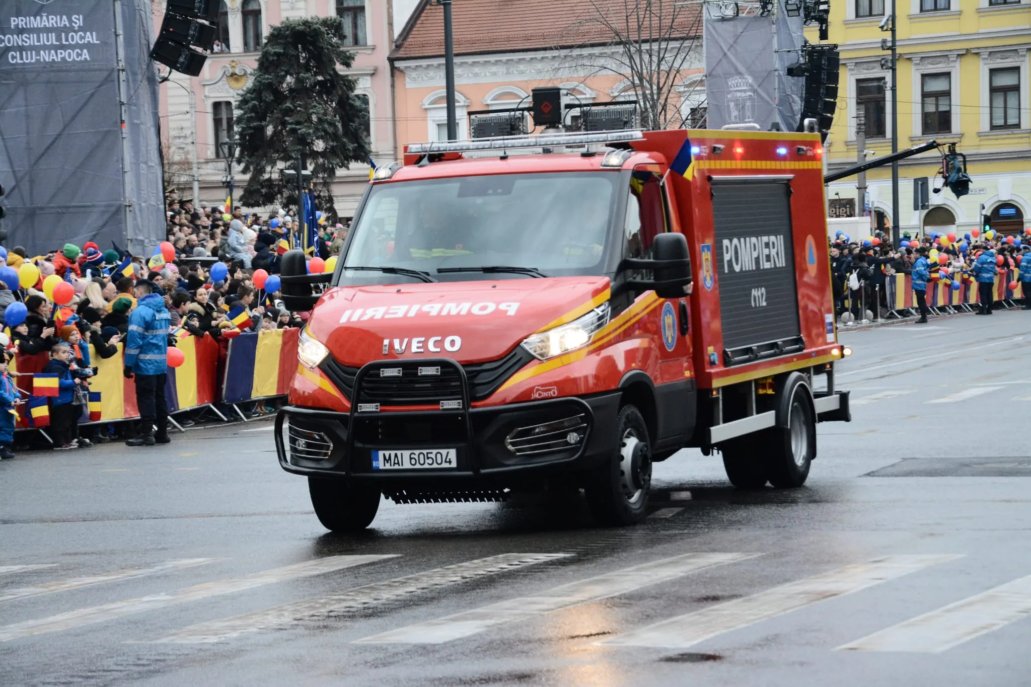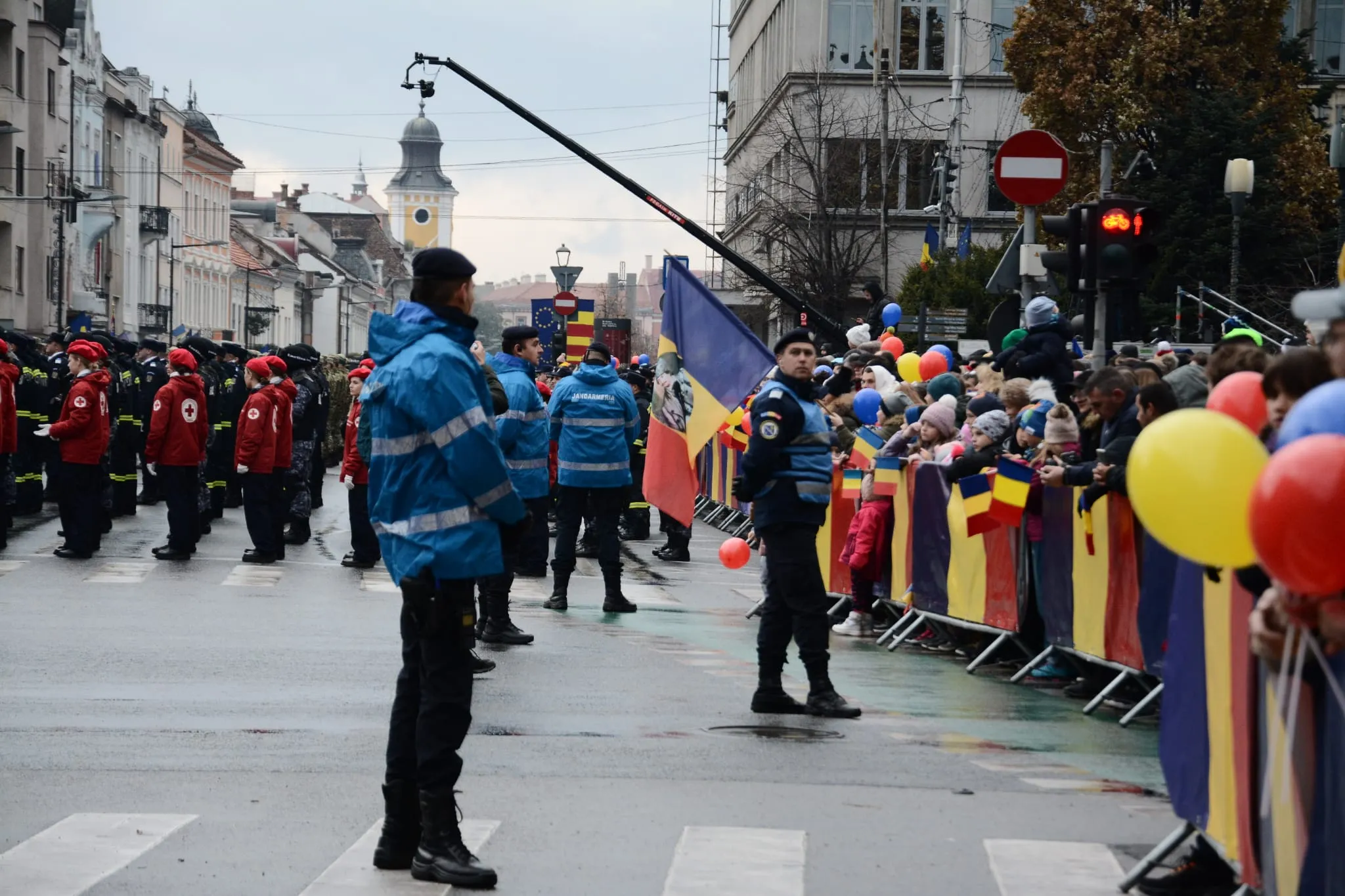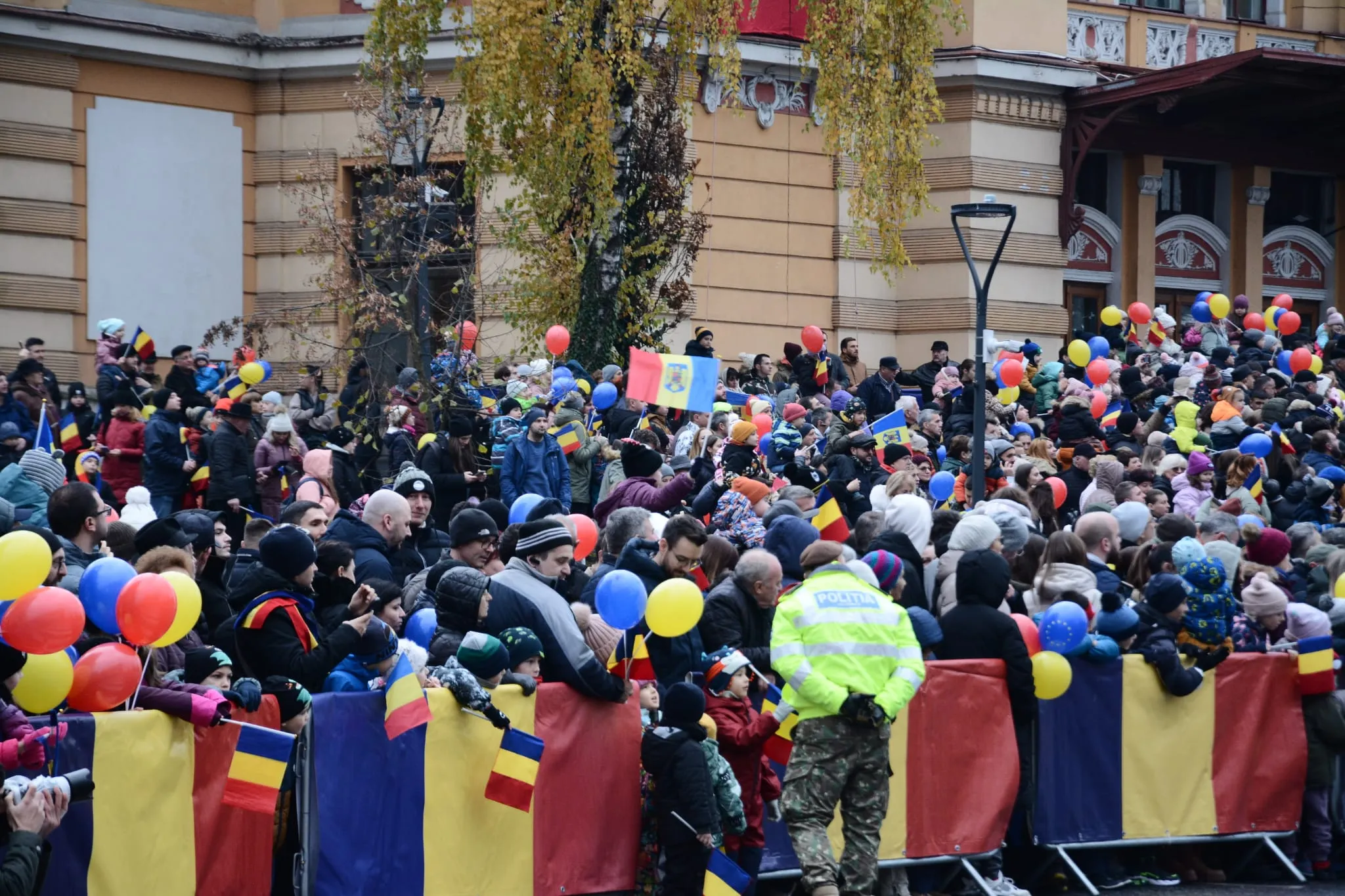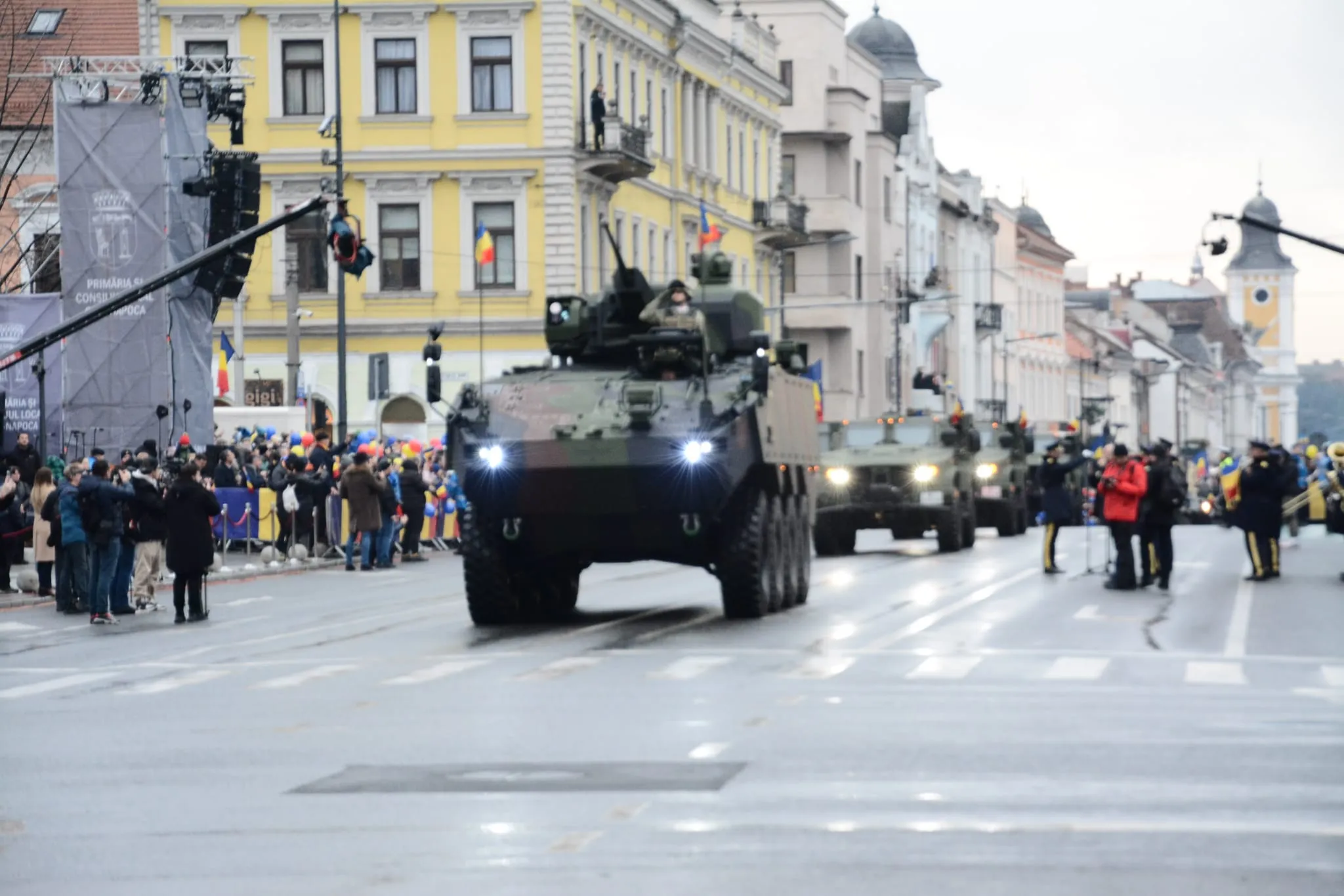 Sute de clujeni au asistat la parada de 1 Decembrie, din Piața Avram Iancu. Au fost foarte mulți copii care s-au înghesuit în primele rânduri pentru a saluta soldații, jandarmii, polițiștii și pompierii, care au defilat.