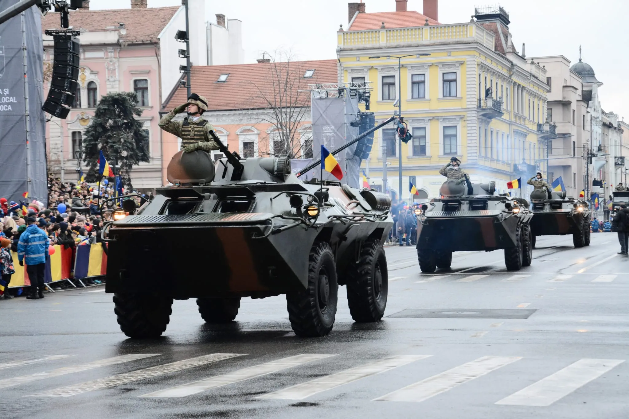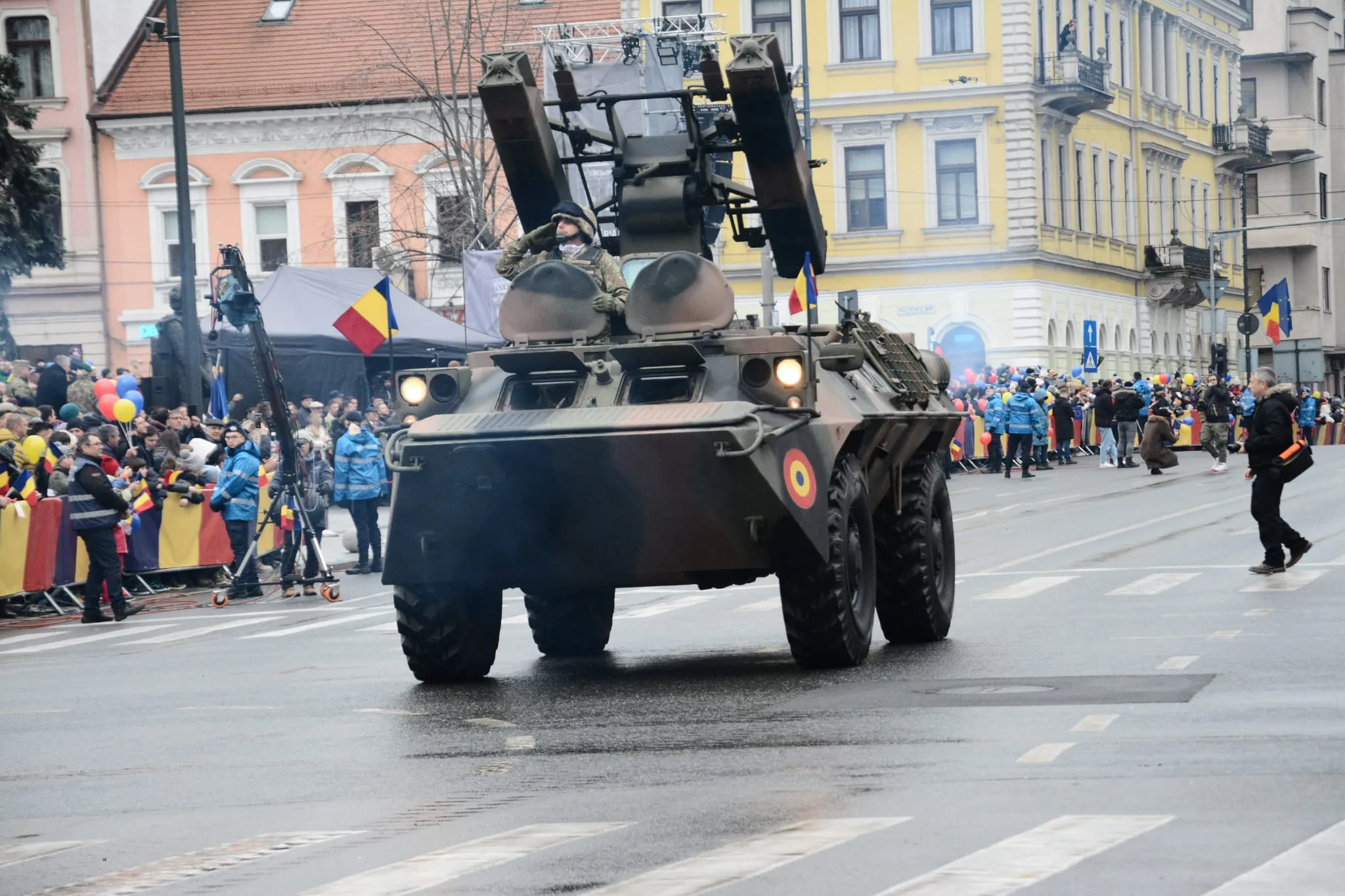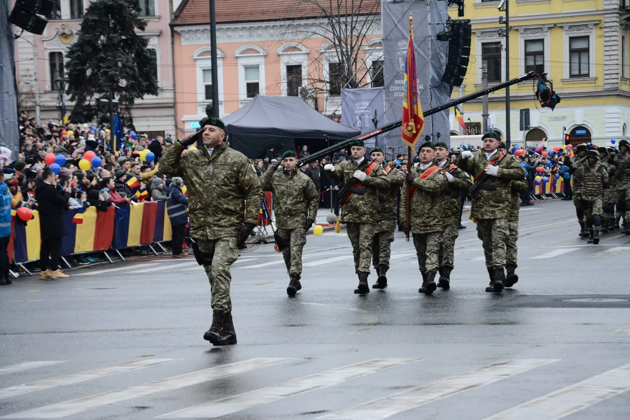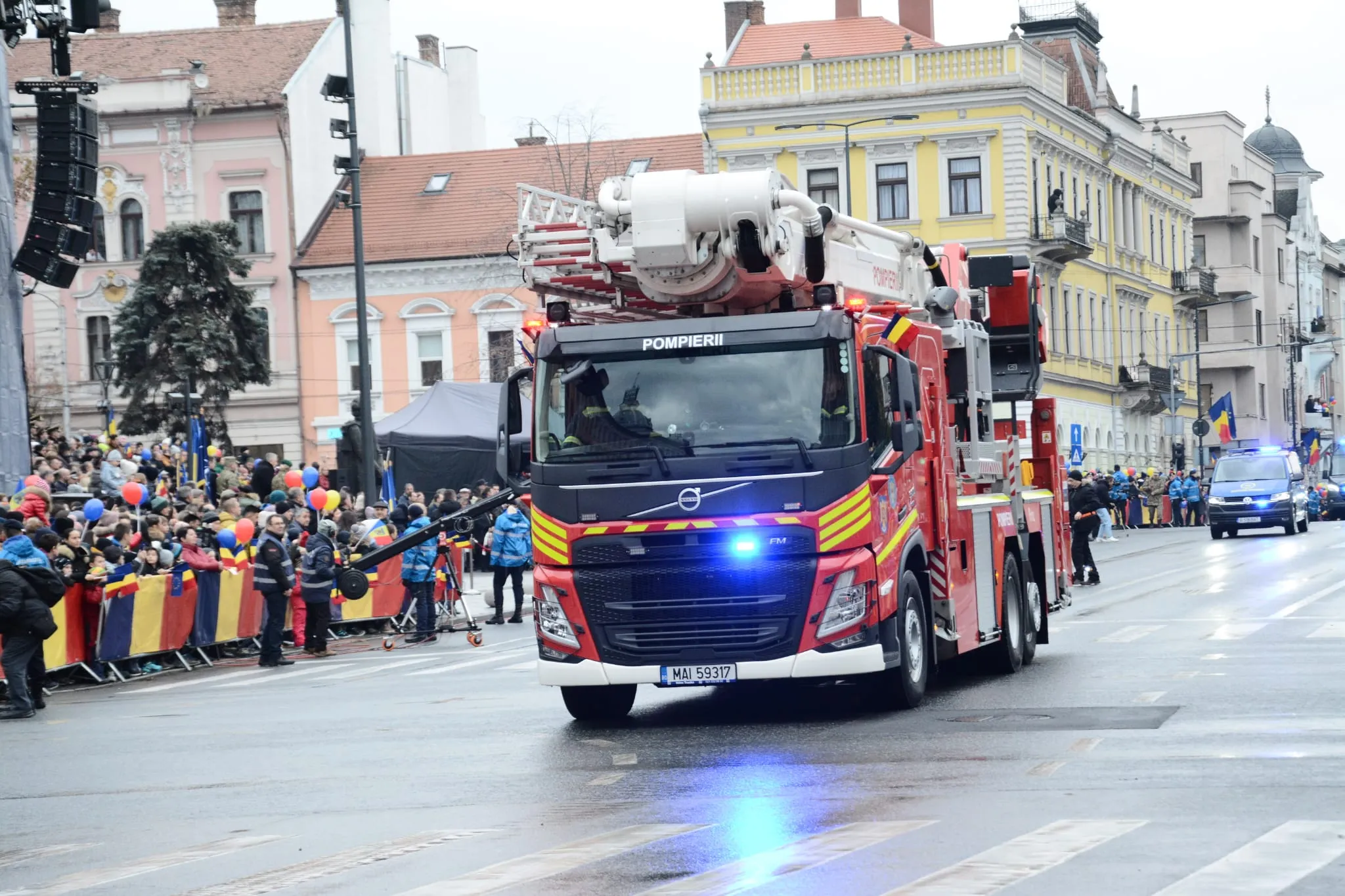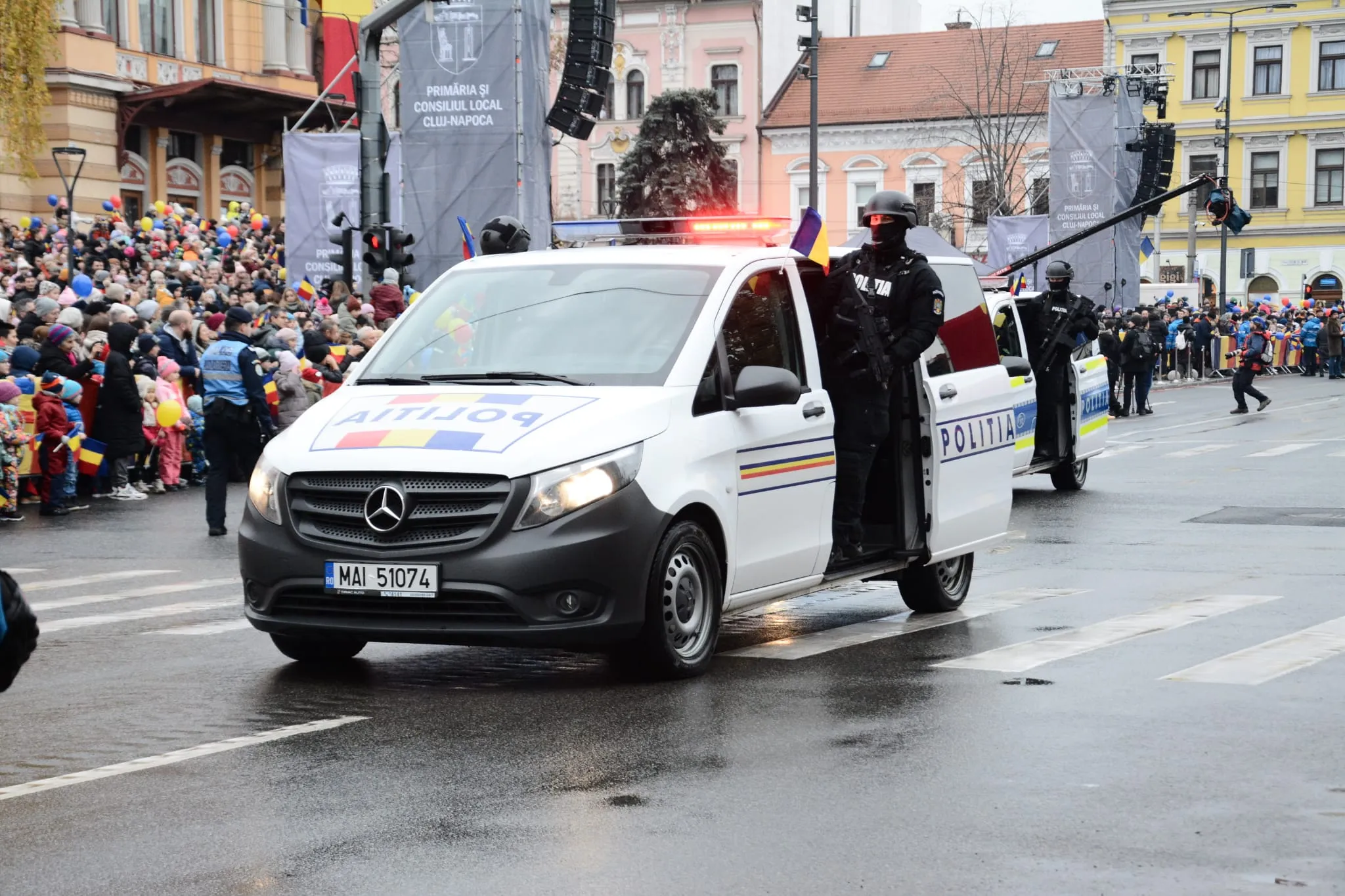 Sute de clujeni au asistat la parada de 1 Decembrie, din Piața Avram Iancu. Au fost foarte mulți copii care s-au înghesuit în primele rânduri pentru a saluta soldații, jandarmii, polițiștii și pompierii, care au defilat.