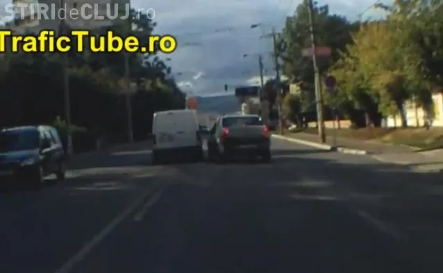 La un pas de accident pe strada Teodor Mihali. Scena a fost filmată și pare desprinsă dintr-un film cu șoferi PROȘTI - VIDEO