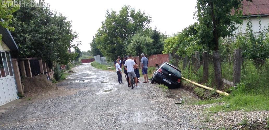 O șoferiță a fost la un pas de moarte în satul Sânnicoară, după ce a aterizat cu mașina într-o rigolă plină cu apă.
