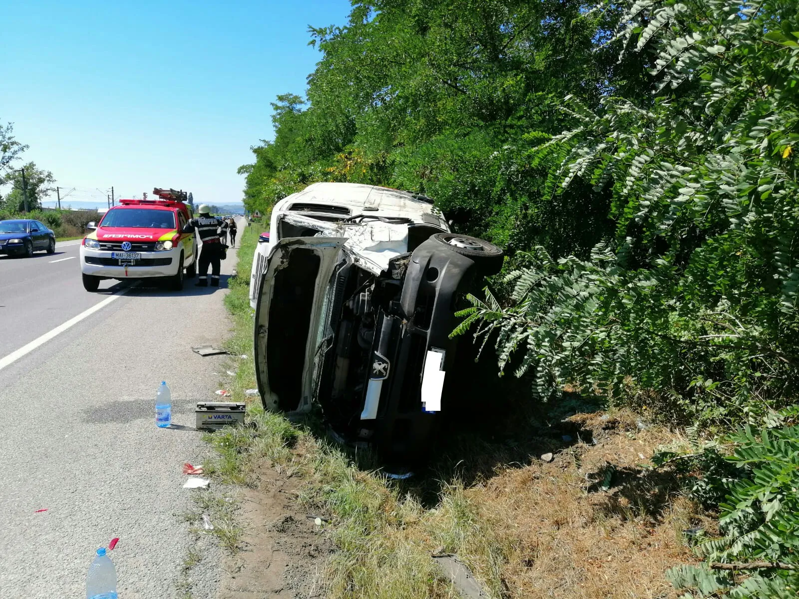 O autoutilitară a lovit o căprioară, apoi s-a răsturnat în afara carosabilului, anunta Politia Cluj.