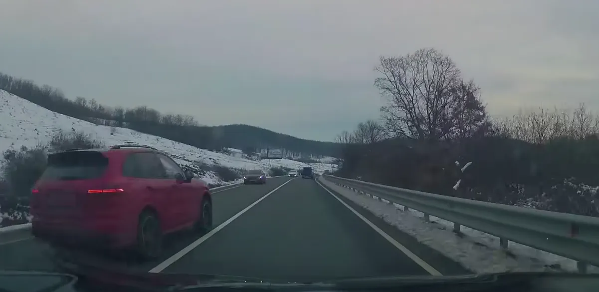 Un participant la trafic a surprins momentul și l-a publicat pe o rețea de socializare pentru a atrage atenția asupra acestor evenimente care se întâmplă aproape zilnic pe drumurile din județ.
