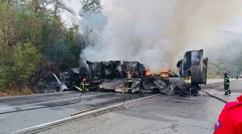 Un autotren a fost mistuit de flăcări, marți dimineața, pe DN 7, între localitățile Vărădia de Mureș și Săvârșin din Arad. Șoferul și cei doi pasageri au reușit să se evacueze la timp.
