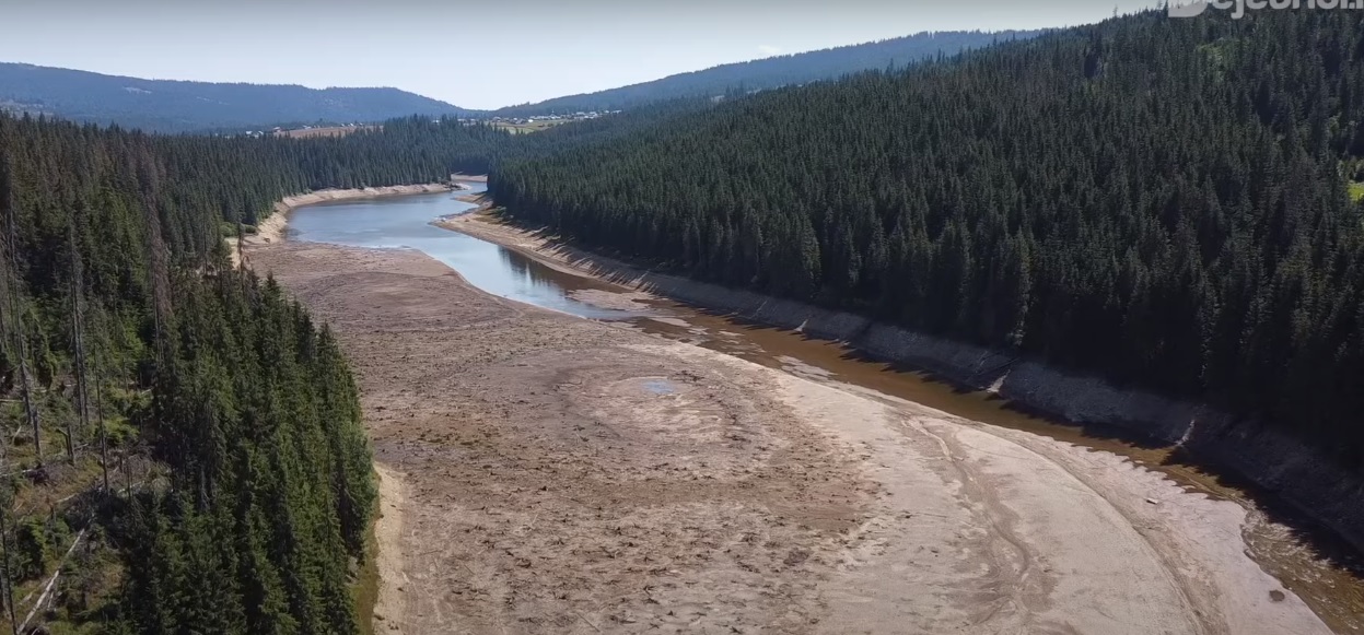 Lacul Beliș este tot mai afectat de secetă, după cum se vede din imaginile surprinse din dronă. Chiar dacă lacul are încă apă, nivelul a scăzut mult, pentru că nu a plouat aproape deloc încă din primăvară.
