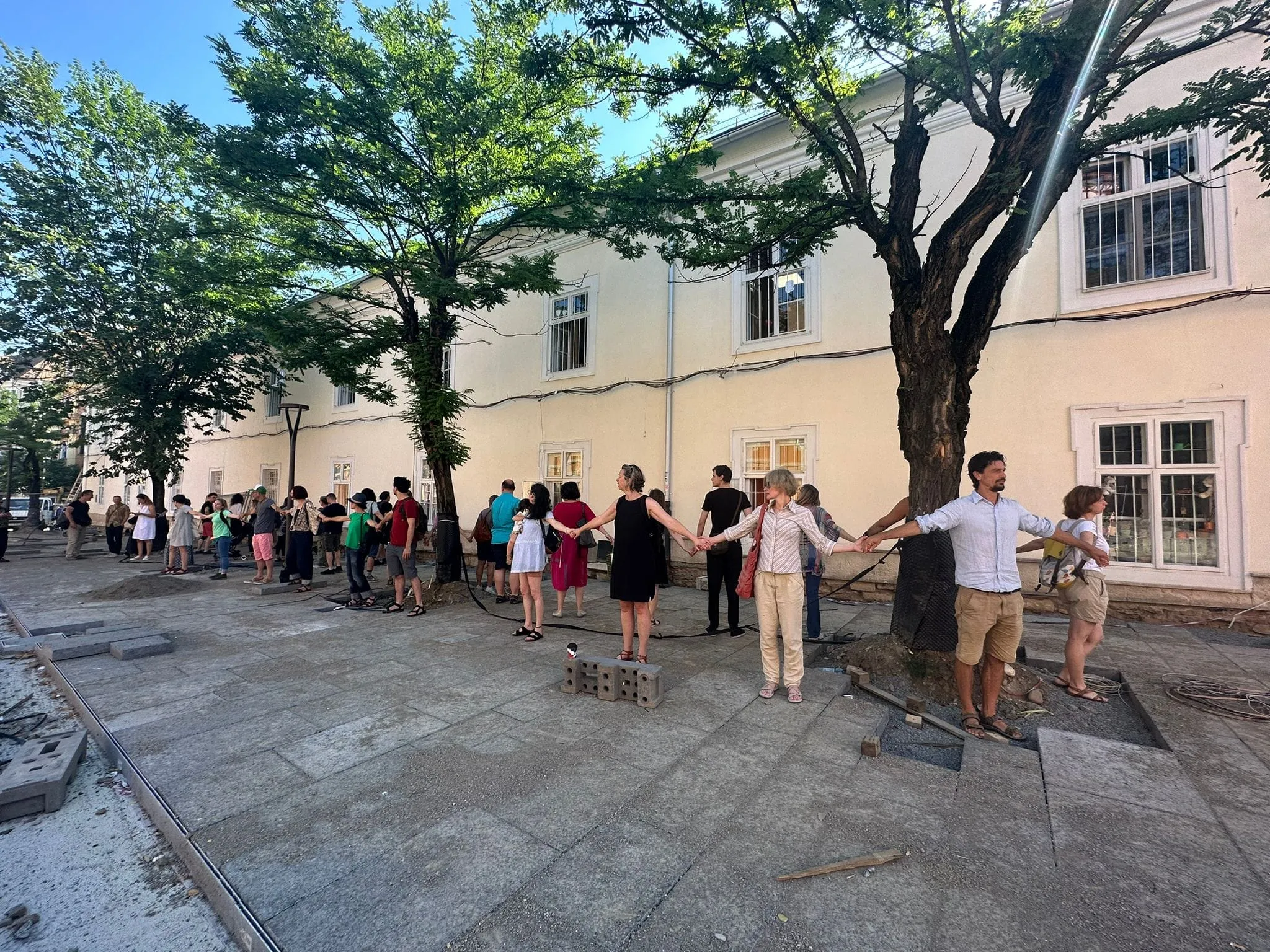 Lanț uman în jurul copacilor de pe strada Universității! Clujenii nu cedează, vor un oraș mai verde fără distrugerea arborilor existenți