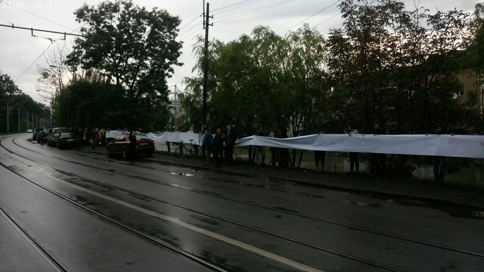 Lanț uman, pentru salvarea malului Someșului, la Cluj. Nu vor lărgirea Splaiului Independenței FOTO VIDEO