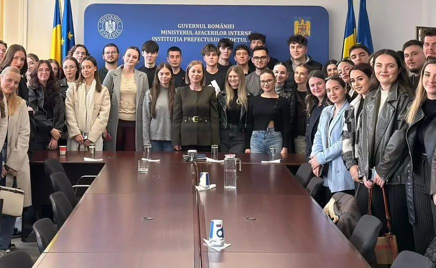 Obiectivul întâlnirii a fost familiarizarea tinerilor cu rolul și atribuțiile prefectului, cu structura Prefecturii și cu modul în care instituția contribuie la buna guvernare la nivel local. Studenții au aflat direct de la sursă cum funcționează administrația publică în practică — nu din manuale.