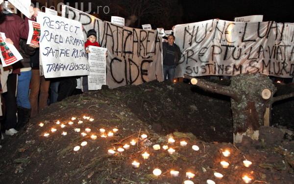 O actiune similara a avut loc, miercuri seara, in Piata Unirii din Cluj-Napoca, la manifestatie participand zeci de persoane.