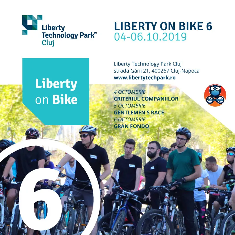 Sâmbătă, 5 octombrie, cicliștii (cu experiență sau fară) sunt așteptați la Gentlemen’s Race, o cursă fără arbitri, relaxată, care nu ține cont de vârstă și se bazează pe munca în echipă. Participanții se înscriu individual, iar apoi, prin tragere la sorți, se formează echipe de câte 4 membri, care vor parcurge un traseu de 35 km cu o diferență de nivel pozitivă de aproximativ 300 de metri. Mai multe informații aici: http://turadenoapte.dck.ro/gr2019/. În timpul cursei, la Liberty Technology Park Cluj va fi amenajat și un stand de colectare de piese, echipamente și biciclete pentru donații. Acestea vor fi verificate, completate și pregătite să ajungă la copiii din centre.