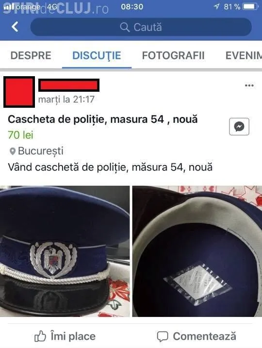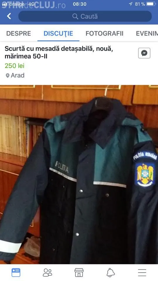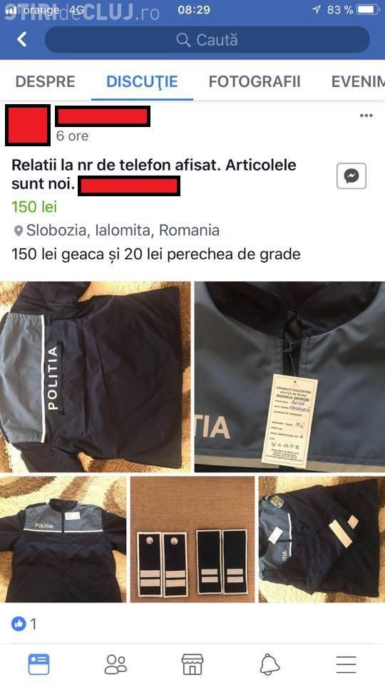 Acesta a prezentat anunțuri postate pe Facebook, prin care polițiștii vând, spre exemplu, o geacă de poliție cu preţuri cuprinse între 150 şi 250 de lei, gradele, cu 20 de lei, sau o caschetă cu 70 de lei.