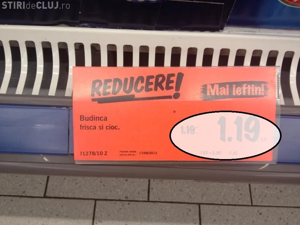 Spre exemplu, o budincă cu frișcă în valoare de 1.19 lei este redusă tot la 1.19 lei. Semnul de REDUCERE este însă mare, pentru a fi văzut de cât mai mulți.