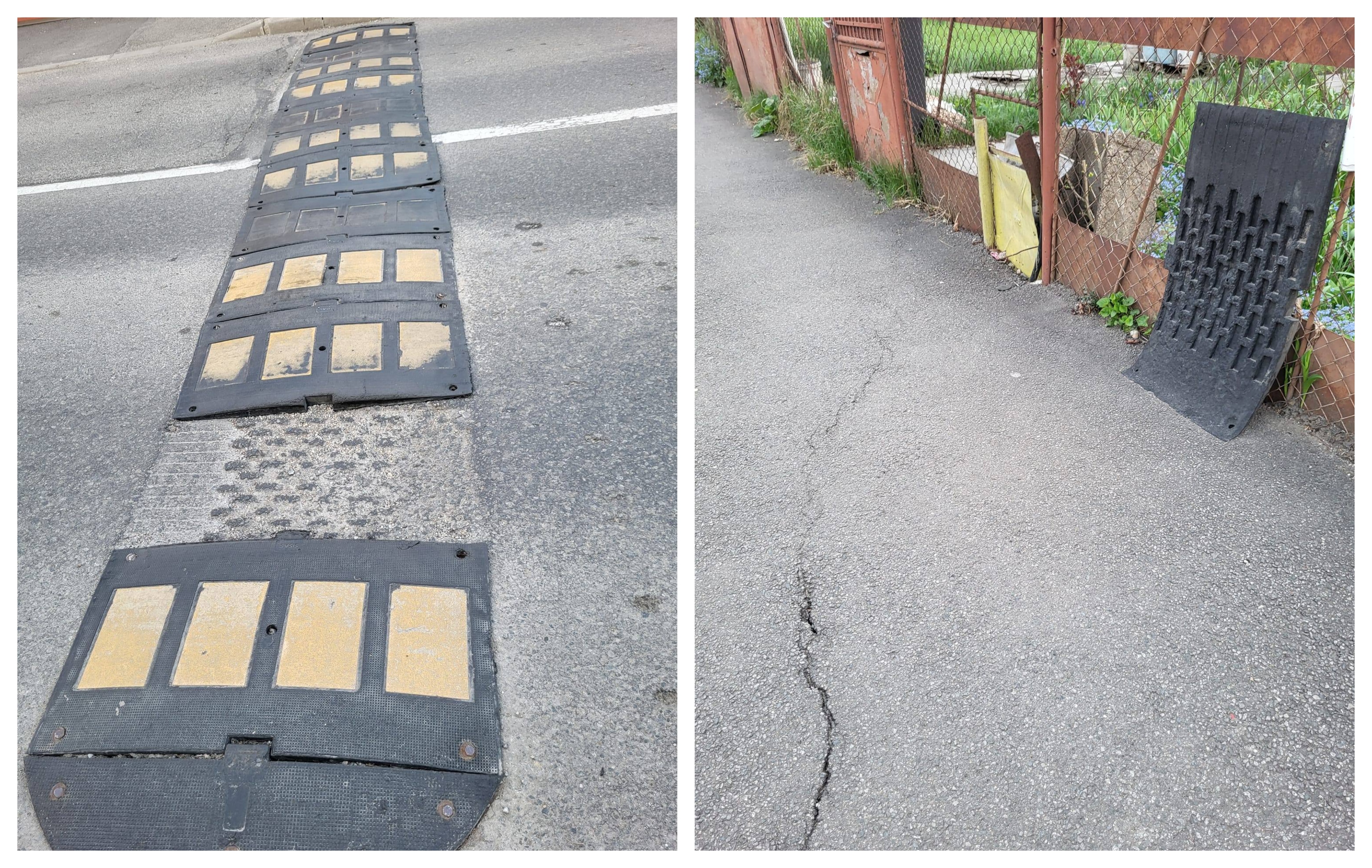 Limitatoarele de viteză de pe o stradă din Cluj-Napoca își „iau zborul”! S-au desprins de pe drum și sunt un adevărat pericol FOTO