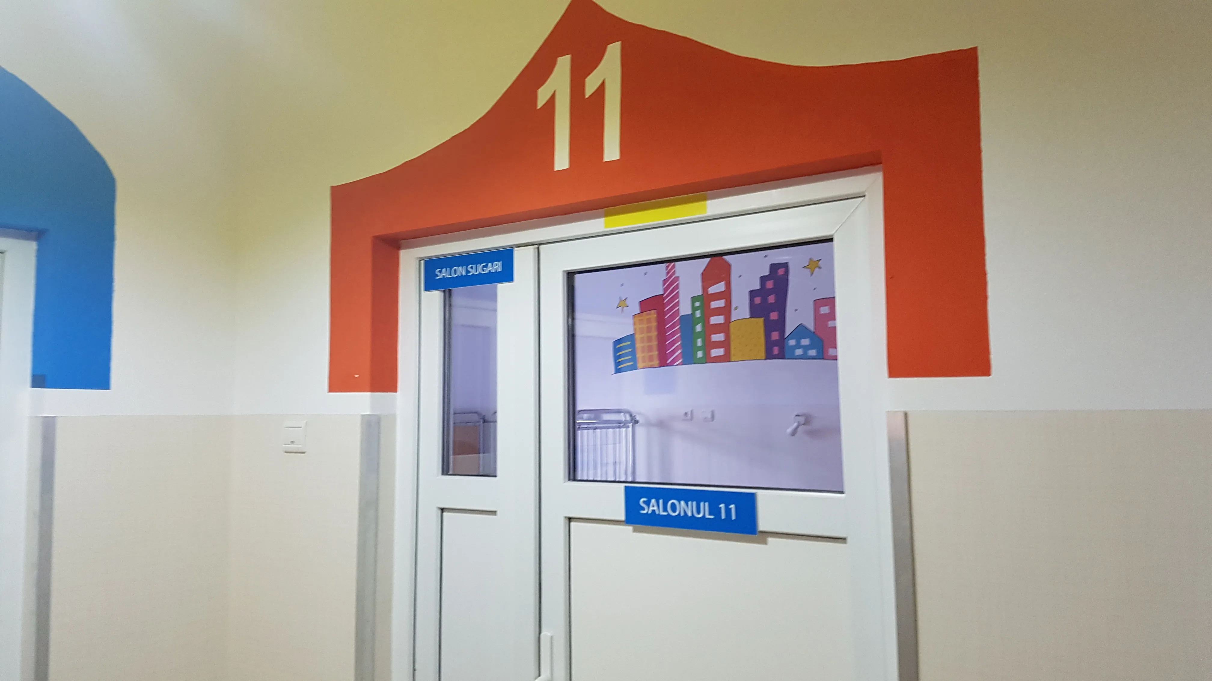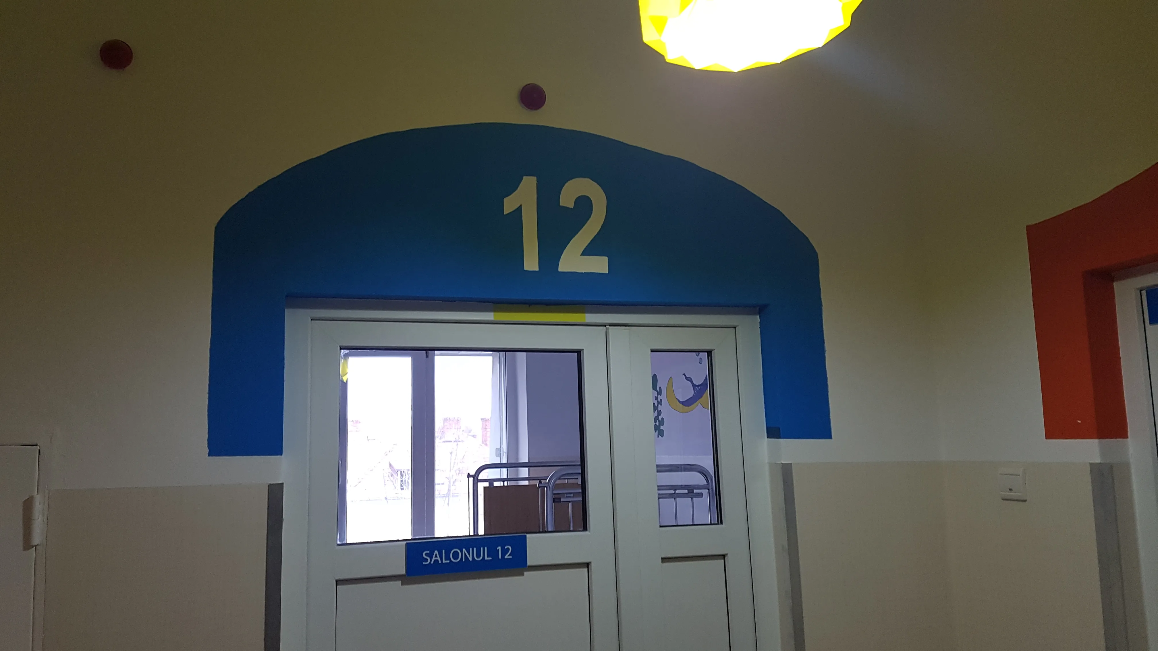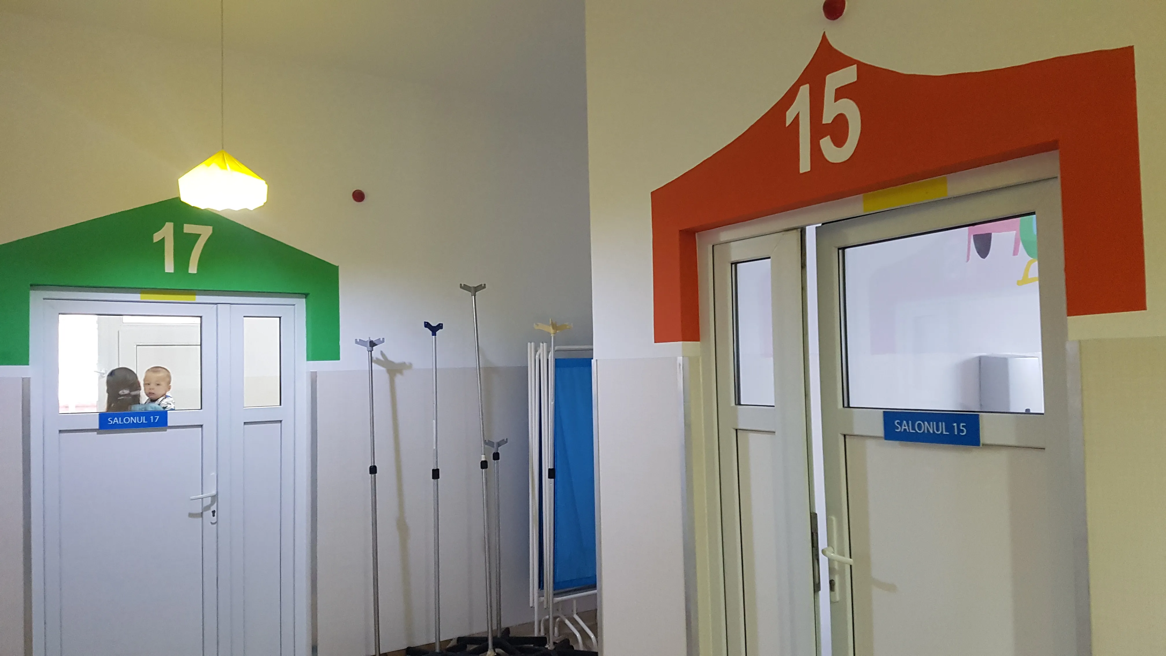 Mai exact, s-a înlocuit integral mozaicul și vopseaua vechea cu tarkett/PVC sanitar, iar pereții au fost vopsiți cu lavabilă specială pentru mediile spitalicești. Cele 12 saloane + o sală de tratament + o sale de spitalizări de zi + 2 grupuri sanitare + 2 boxe depozitare au trecut printr-un proces complet de reabilitare și înlocuire obiecte sanitare și obiecte electrice. De asemenea, au fost reparate toate ușile și geamurile din material termopan, iar toți pereții au fost colorați cu desene vesele, pentru specificul spitalului (copii), au fost reparate scurgeri în tavan, vopsite caloriferele și au fost înlocuite tablourile electrice.