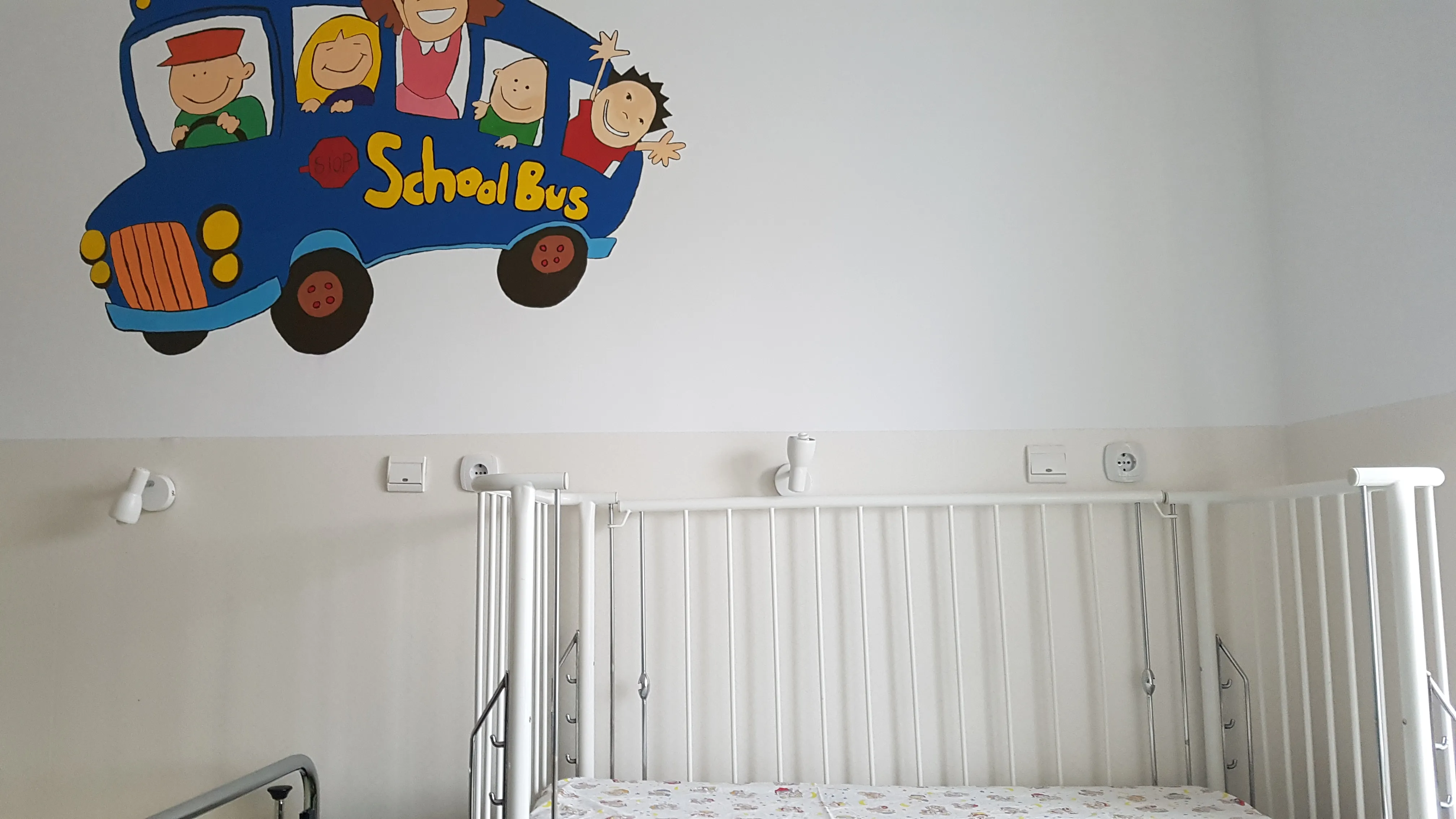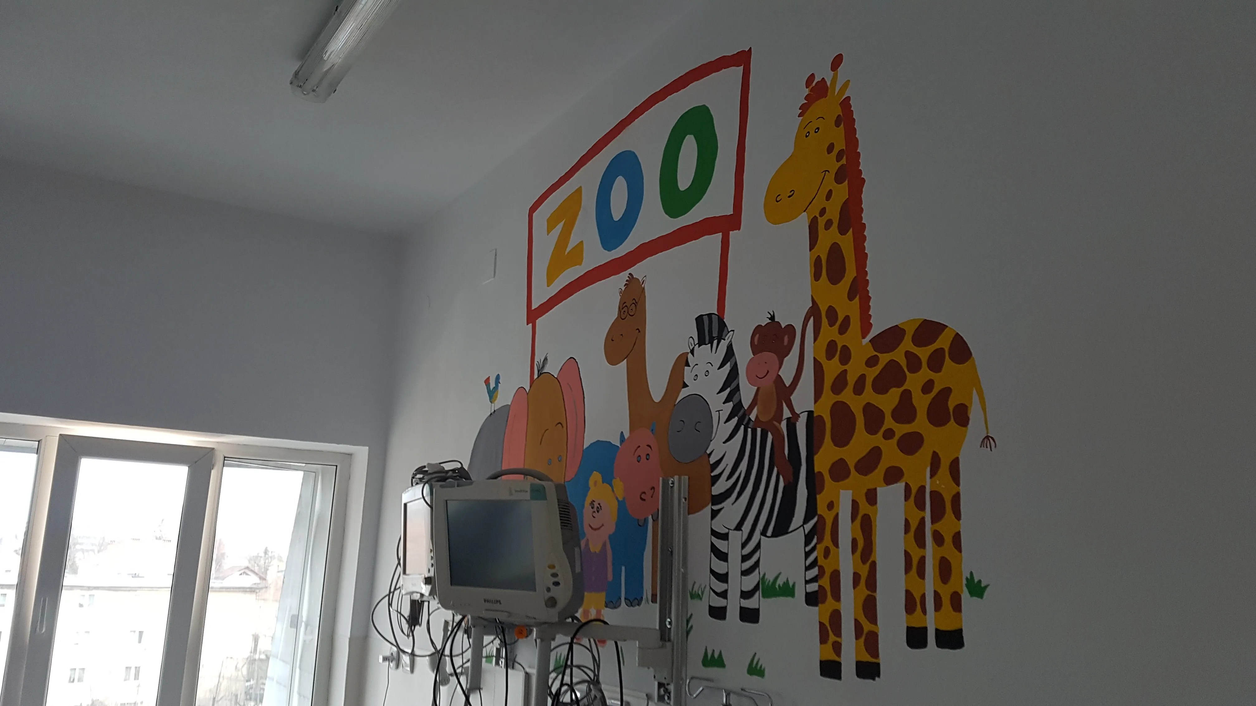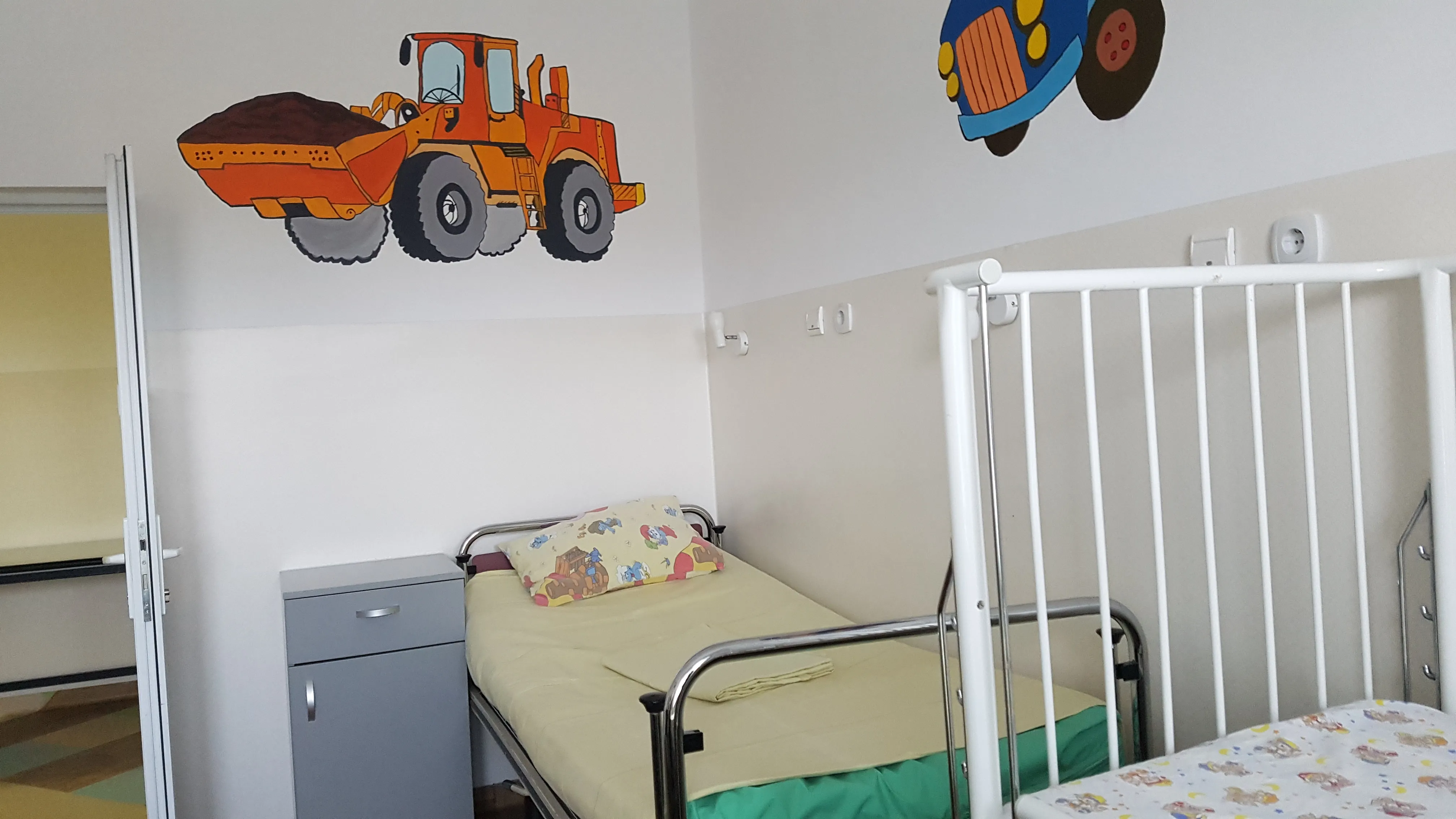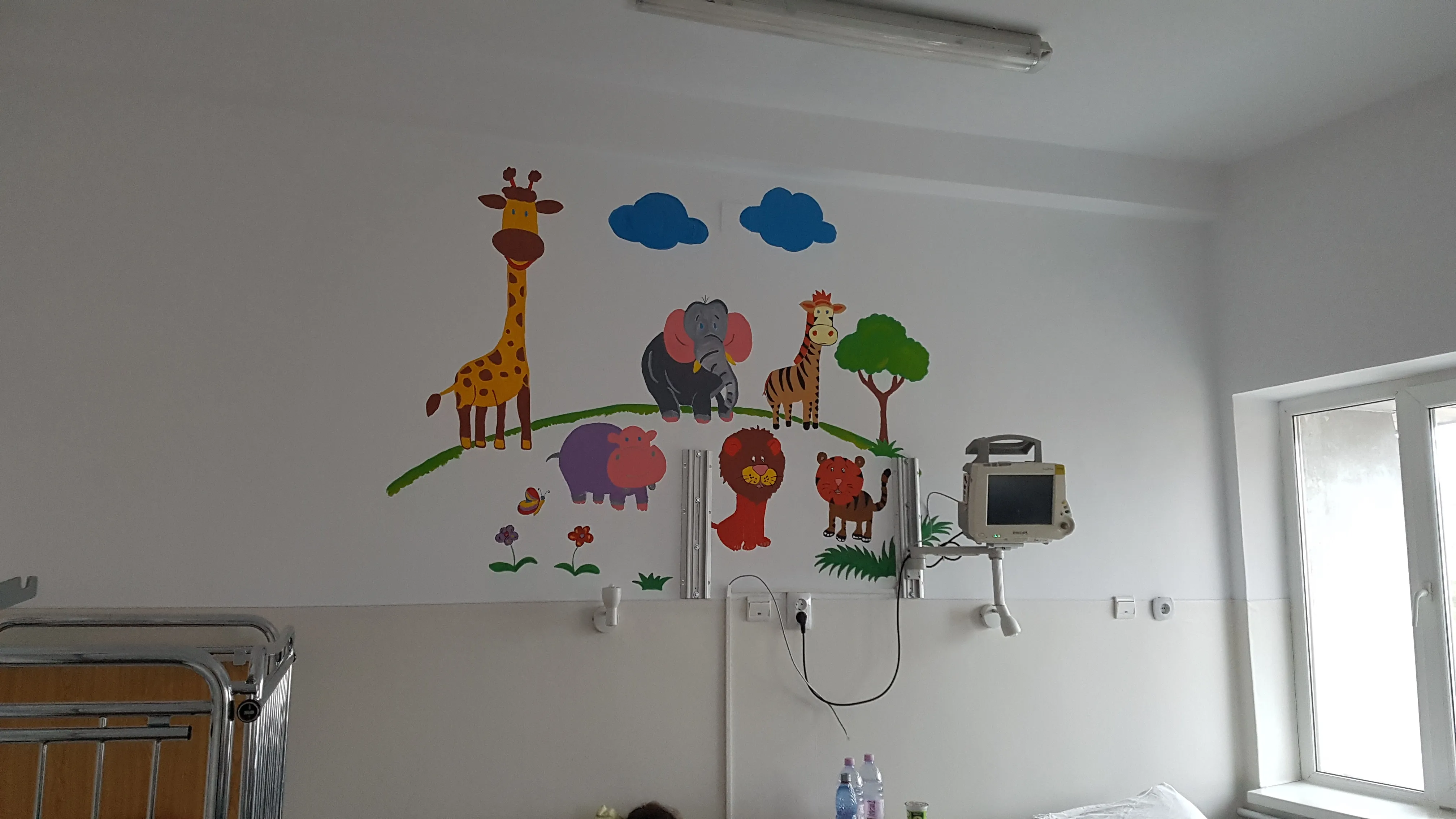 Mai exact, s-a înlocuit integral mozaicul și vopseaua vechea cu tarkett/PVC sanitar, iar pereții au fost vopsiți cu lavabilă specială pentru mediile spitalicești. Cele 12 saloane + o sală de tratament + o sale de spitalizări de zi + 2 grupuri sanitare + 2 boxe depozitare au trecut printr-un proces complet de reabilitare și înlocuire obiecte sanitare și obiecte electrice. De asemenea, au fost reparate toate ușile și geamurile din material termopan, iar toți pereții au fost colorați cu desene vesele, pentru specificul spitalului (copii), au fost reparate scurgeri în tavan, vopsite caloriferele și au fost înlocuite tablourile electrice.