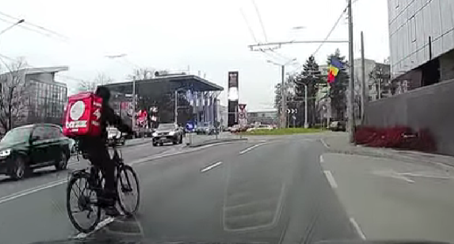 Livratorii de mâncare din Cluj nu țin cont de regulile de circulație! Un biciclist s-a asigurat dintr-o privire și și-a risca viața - VIDEO