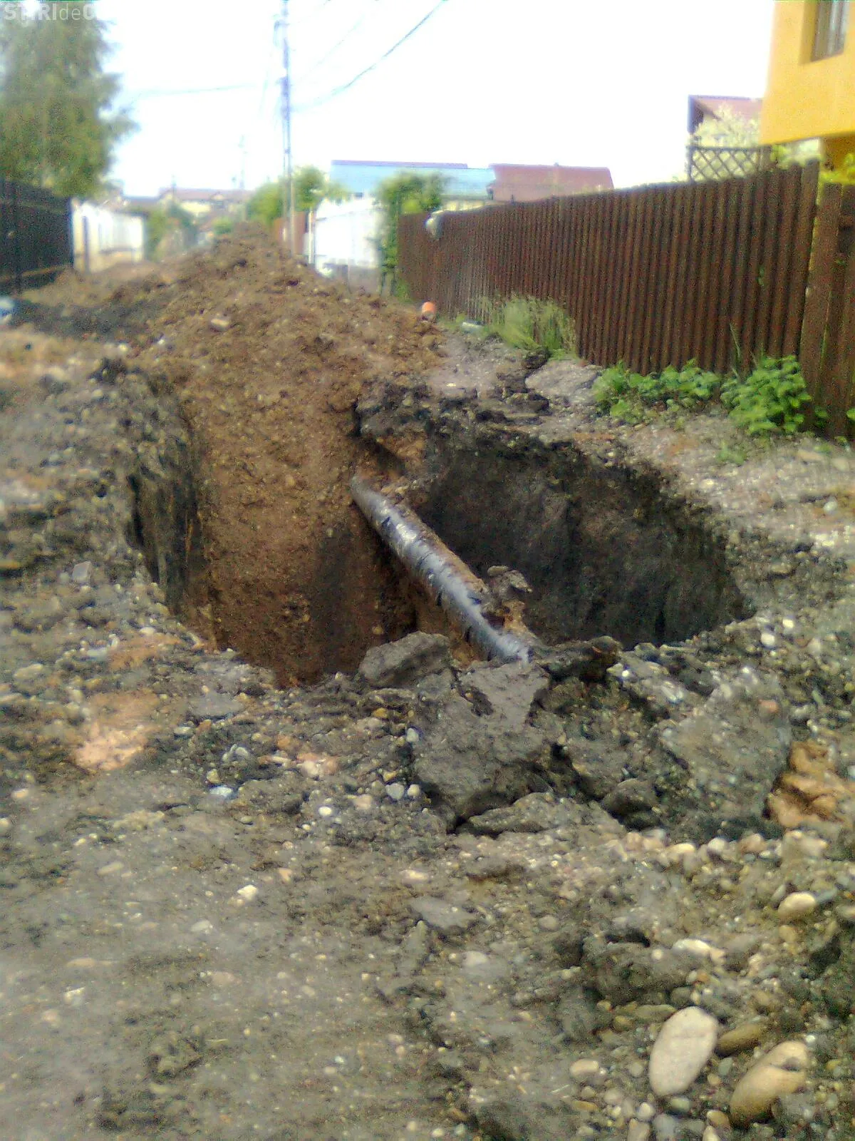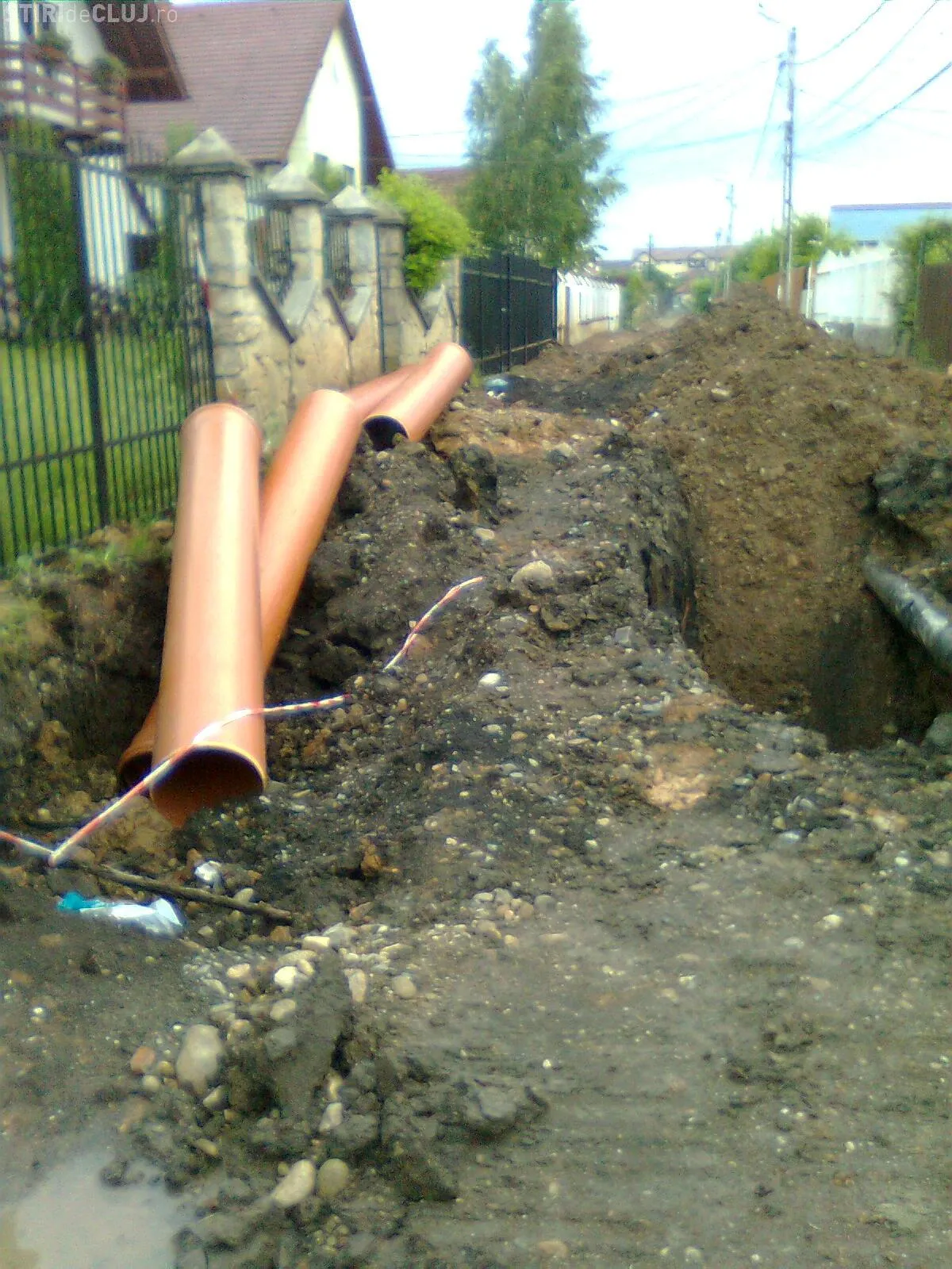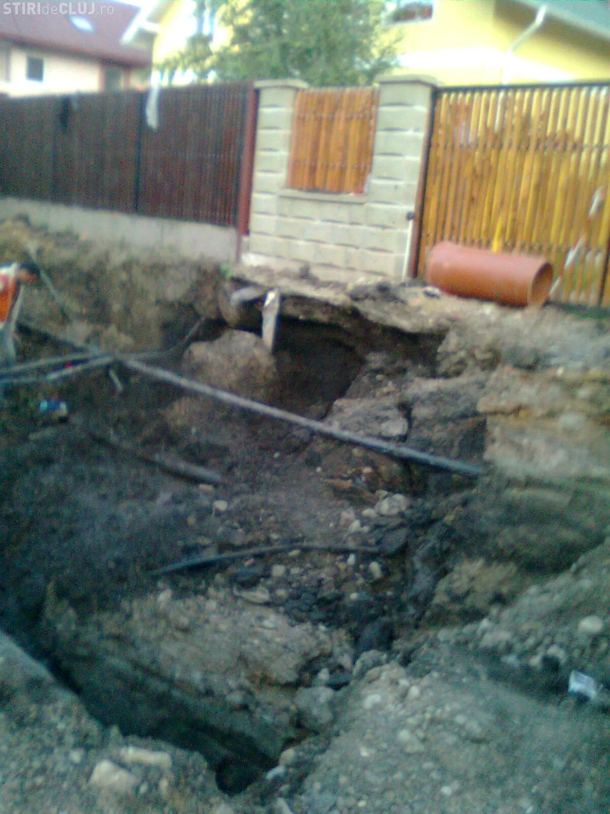 "Pe parcursul lucrarilor, datorita surparilor repetate ale malurilor santului de canal (la mijlocul strazii a ajuns la 5 metri adancime, iar muncitorii nu folosesc niciun fel de sisteme de sustinere sau protectie!!!) a fost pusa in pericol si stabilirea stalpilor care sustin cabluri electrice, acestia fiind legati de garduri locuintelor, ceea ce mi se pare o improvizatie periculoasa si de nepermis", se mai arata in memoriul locatarilor.
