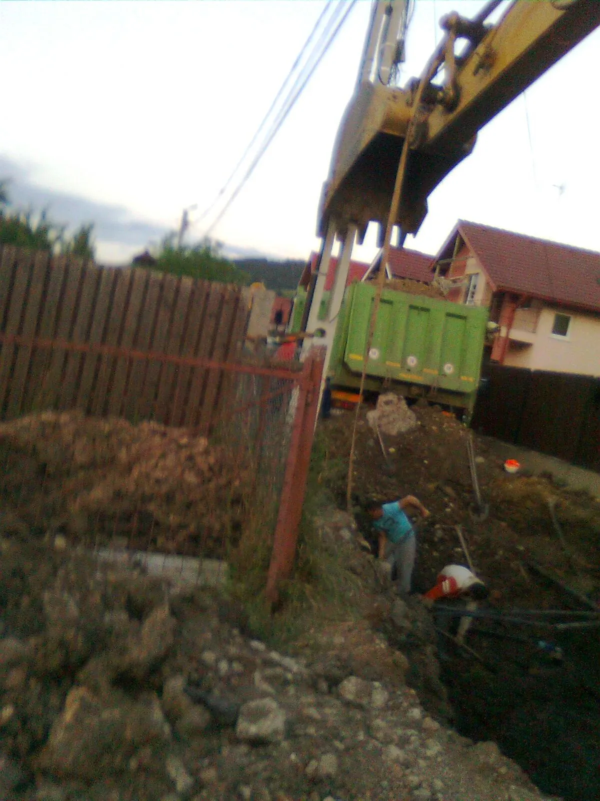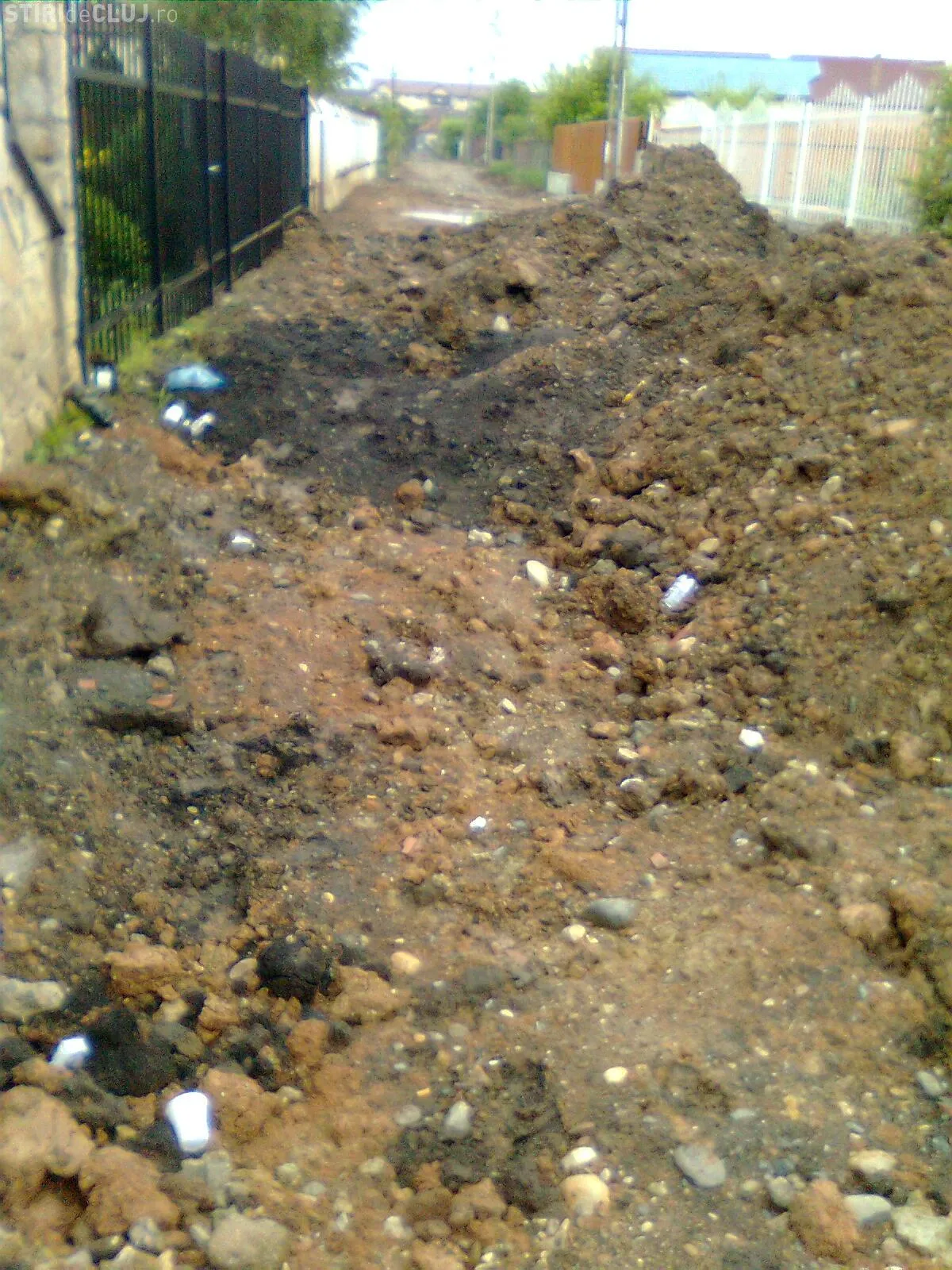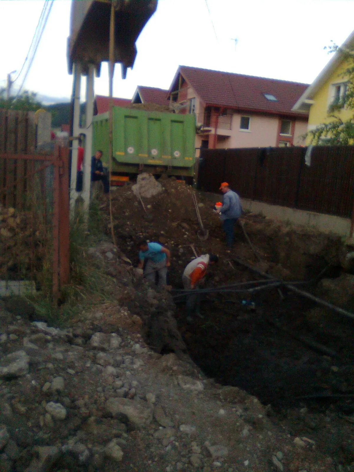 "Pe parcursul lucrarilor, datorita surparilor repetate ale malurilor santului de canal (la mijlocul strazii a ajuns la 5 metri adancime, iar muncitorii nu folosesc niciun fel de sisteme de sustinere sau protectie!!!) a fost pusa in pericol si stabilirea stalpilor care sustin cabluri electrice, acestia fiind legati de garduri locuintelor, ceea ce mi se pare o improvizatie periculoasa si de nepermis", se mai arata in memoriul locatarilor.
