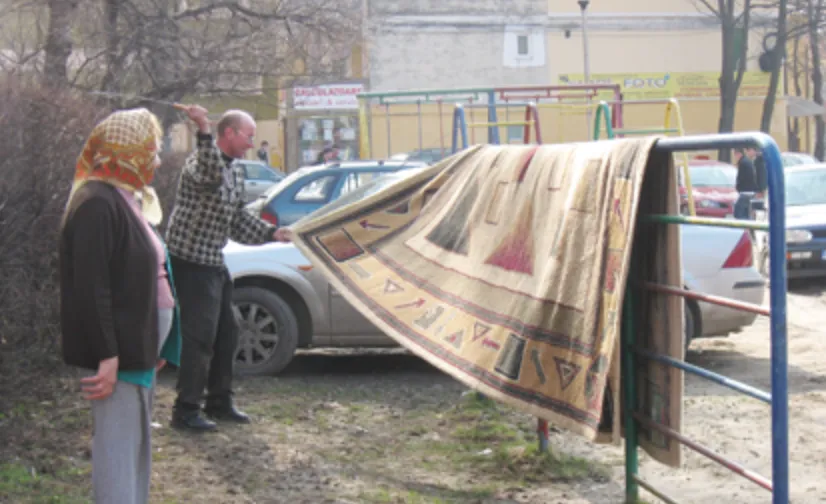 Locatarii dintr-un bloc din Cluj-Napoca cer desființarea bătătorului de covoare: „Zgomotul puternic tulbură liniștea la ore nepotrivite”