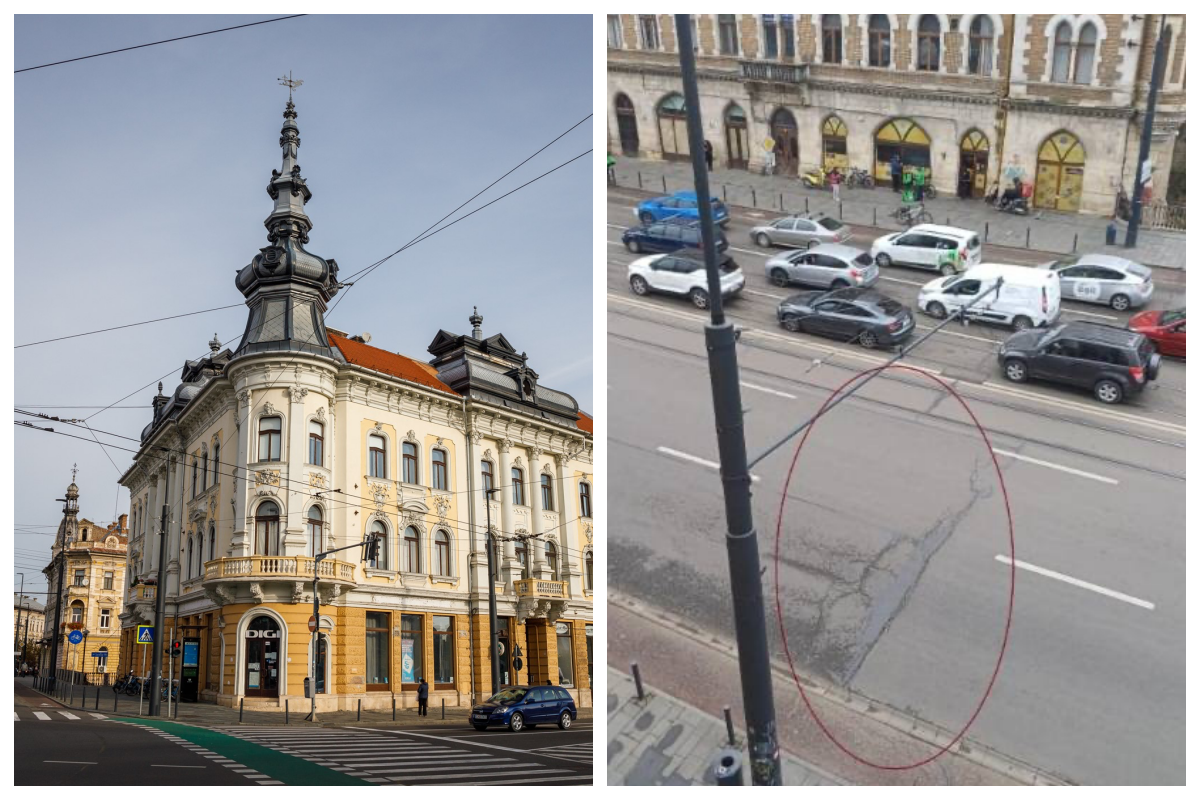 Locatarul unei clădiri istorice situate în Piața Mihai Viteazu spune că locuința sa se zgâlțâie în fiecare zi din cauza unei denivelări din stradă pe care Primăria nu a reușit să o rezolve, asta deși problema a fost semnalată de nenumărate ori.