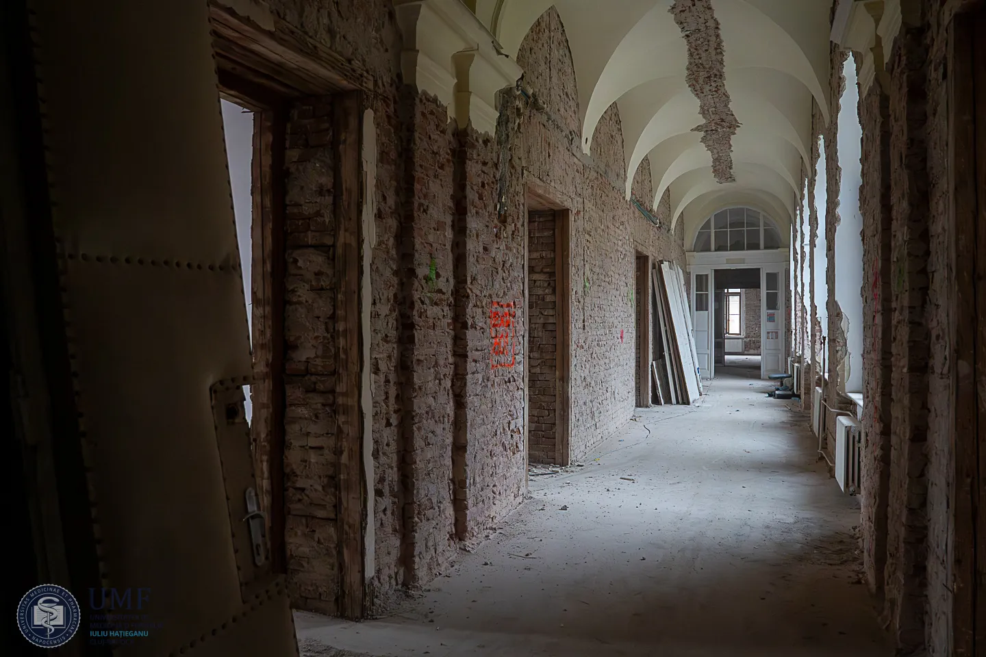 „Vechile materiale au fost în mare parte îndepărtate, iar clădirea începe să «respire» din nou, păstrându-și farmecul arhitectural”, transmit reprezentanții UMF Cluj.