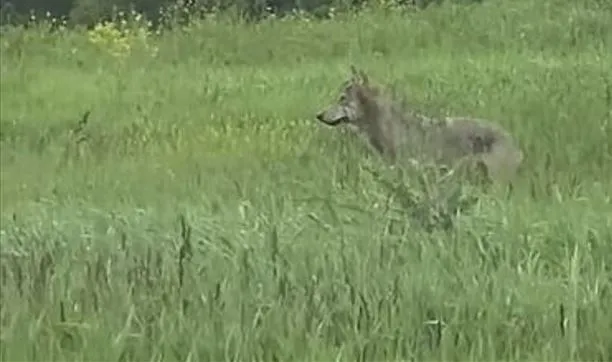Un lup tânăr, filmat la marginea satului Nadăș, județul Cluj. Autoritățile recomandă prudență