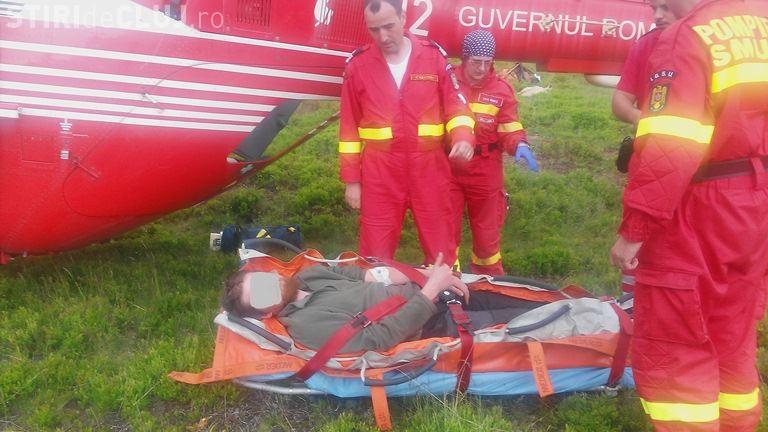 Tânărul a fost preluat de elicopterul SMURD și transportat la Spitalul din Târgu Mureș.