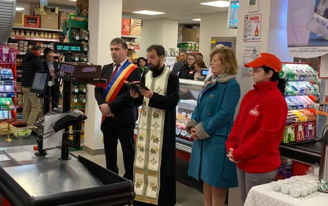 Magazin inaugurat la Cluj cu preot, slujbă și sfințire - FOTO
