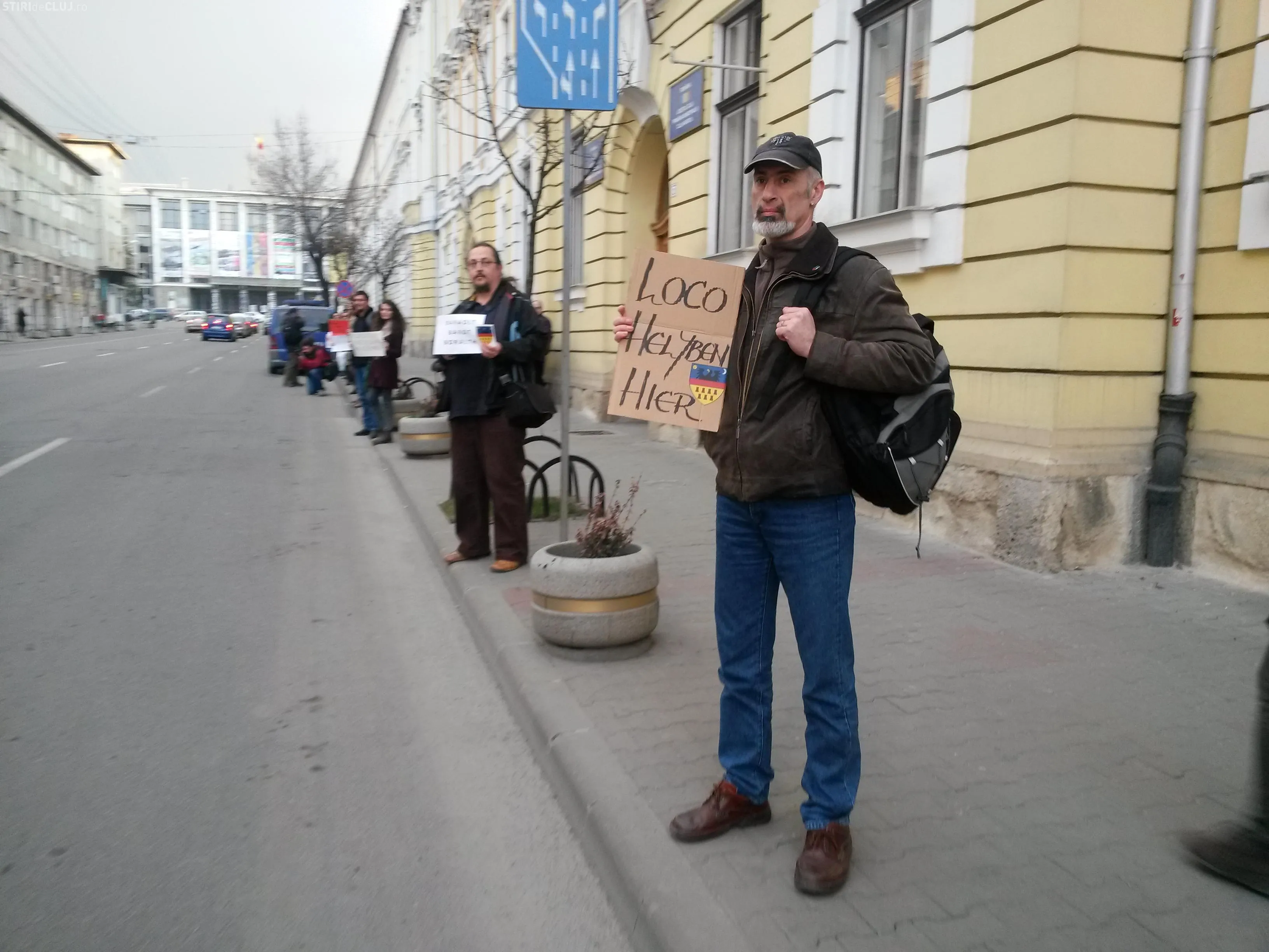 Circa 30 de persoane s-au adunat la Primăria Cluj-Napoca, s-au aliniat pe trotuat ca autostopiști de-a lungul străzii Petru Maior.