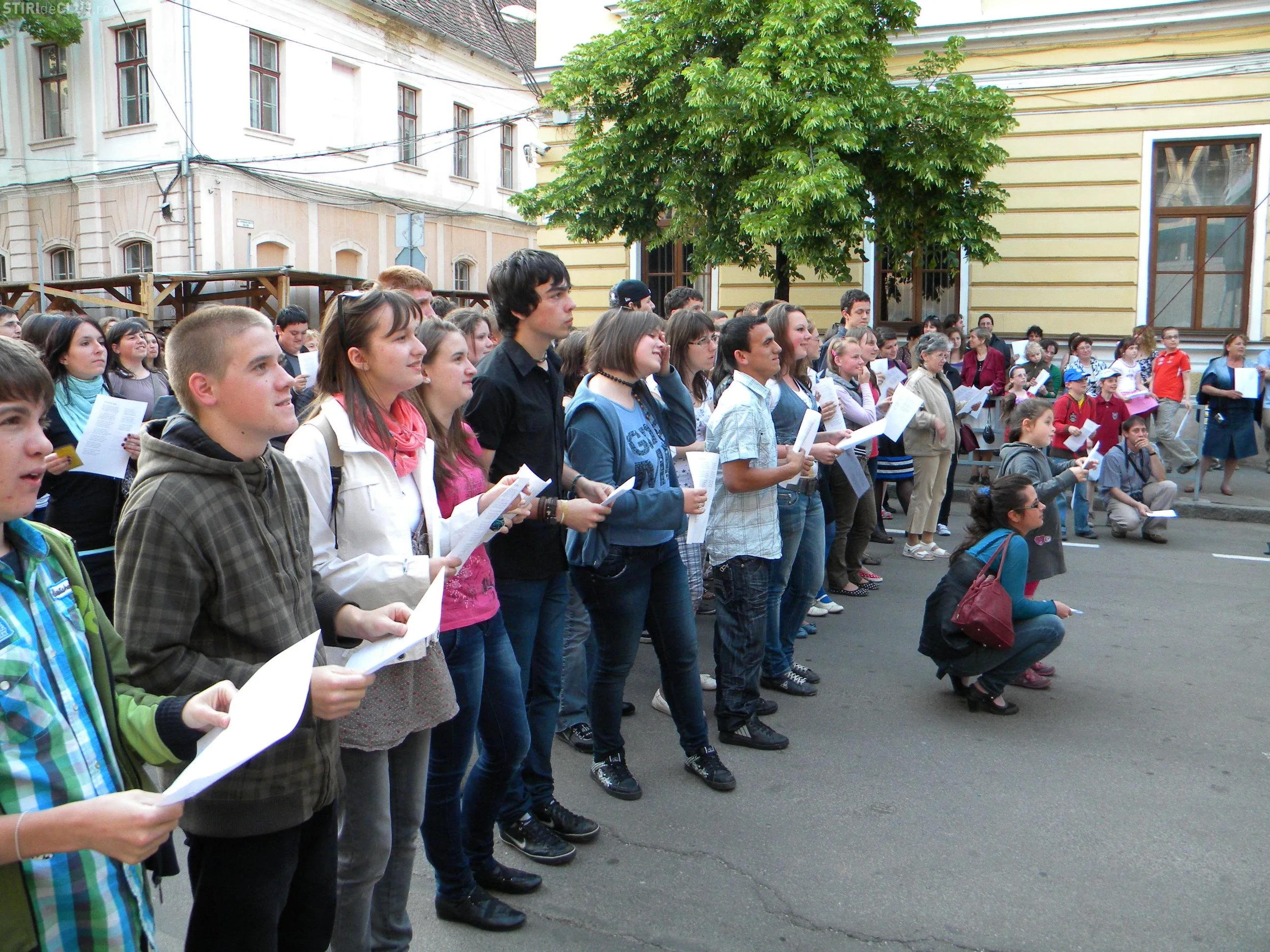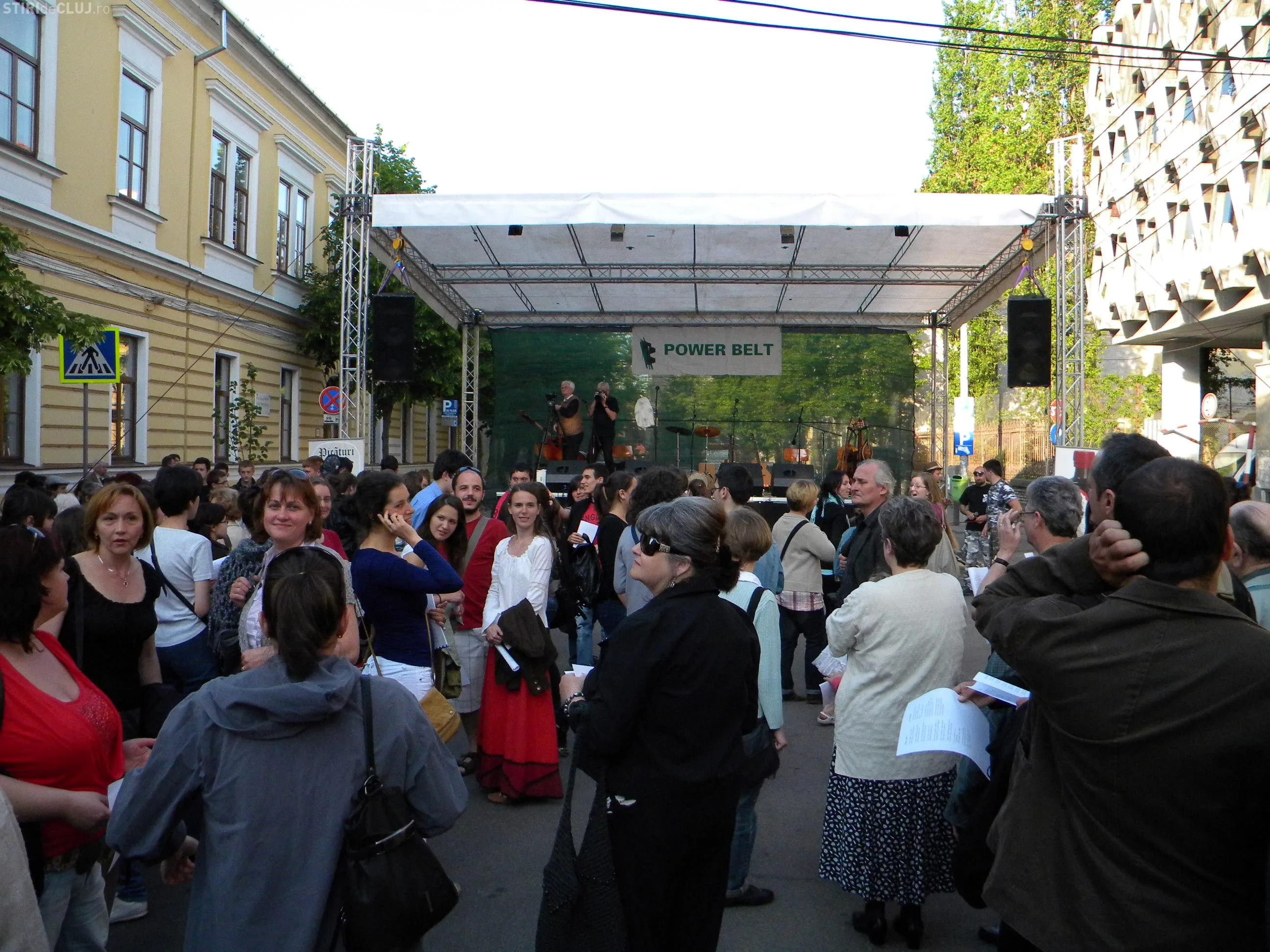 Zeci de maghiari au recitat, sambata, in public poeziile lui Dsida Jeno. Manifestarea a avut loc pe strada Mihail Kogalniceau, artera inchisa partial traficului pana la ora 22.00